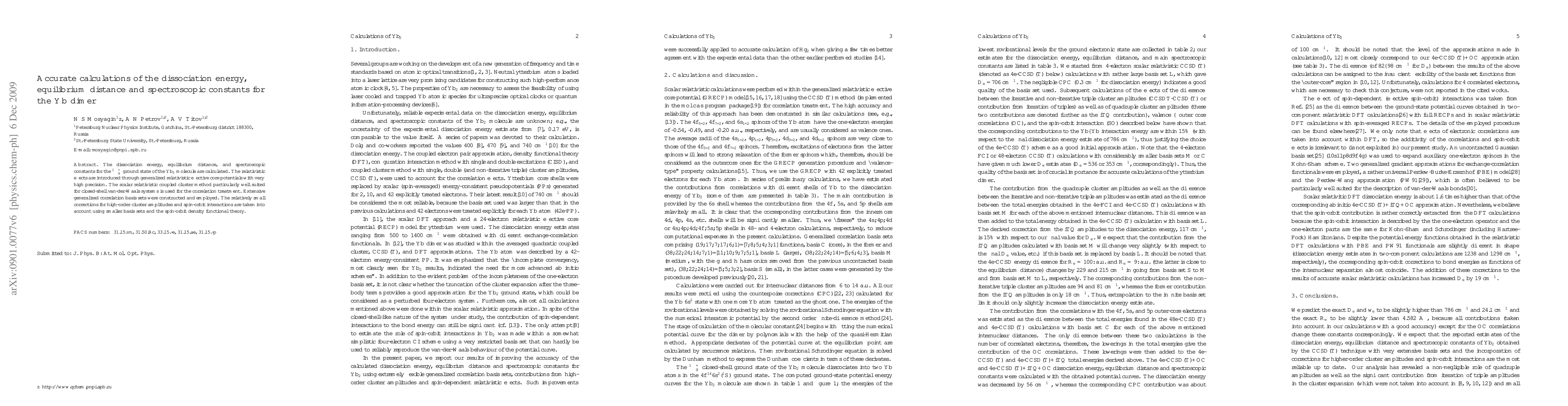 The dissociation energy, equilibrium distance, and spectroscopic constants for the $^1\Sigma_g^+$ ground state of the Yb$_2$ molecule are calculated. The relativistic effects are introduced through generalized relativistic effective core potentials with very high precision. The scalar relativistic coupled cluster method particularly well suited for closed-shell van-der-Waals systems is used for the correlation treatment. Extensive generalized correlation basis sets were constructed and employed. The relatively small corrections for high-order cluster amplitudes and spin-orbit interactions are taken into account using smaller basis sets and the spin-orbit density functional theory.