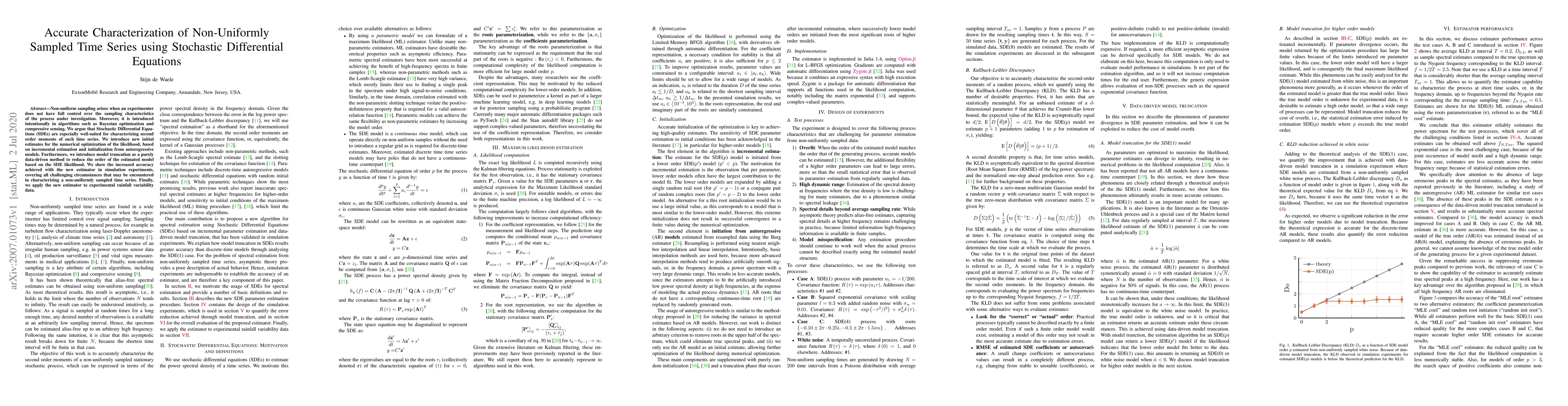 This paper proposes using Stochastic Differential Equations (SDEs) to accurately characterize non-uniformly sampled time series, introducing new initial estimates and model truncation methods to enhance accuracy. The proposed methods are validated through simulation experiments and applied to real rainfall variability data.