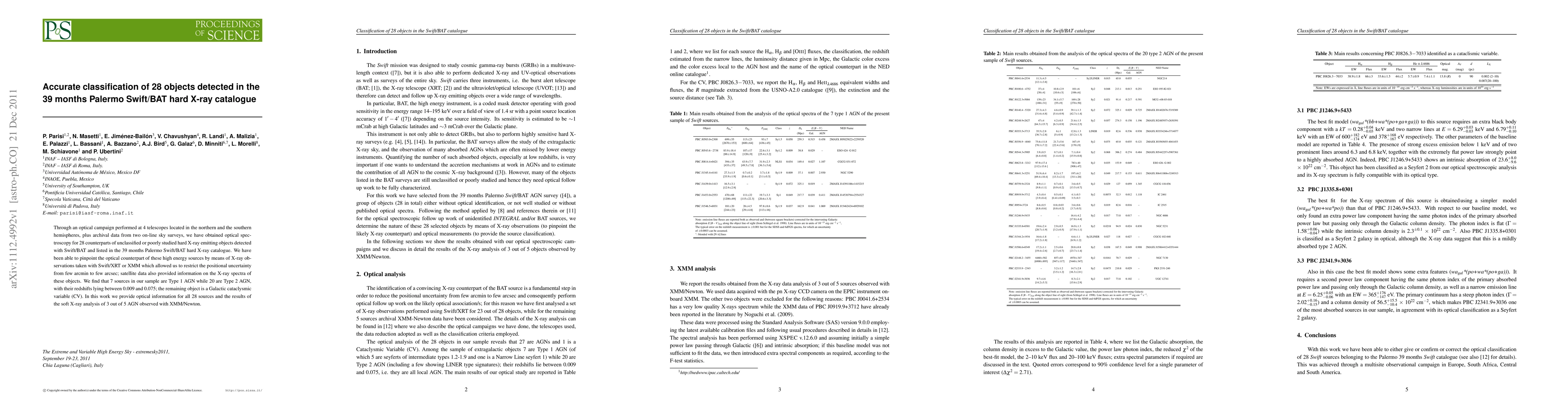 This study classifies 28 unclassified or poorly studied hard X-ray sources from the Palermo Swift/BAT catalogue, identifying 7 as Type 1 AGN, 20 as Type 2 AGN, and 1 as a Galactic cataclysmic variable using optical spectroscopy and archival data. The positional uncertainty was significantly reduced using Swift/XRT or XMM observations.
