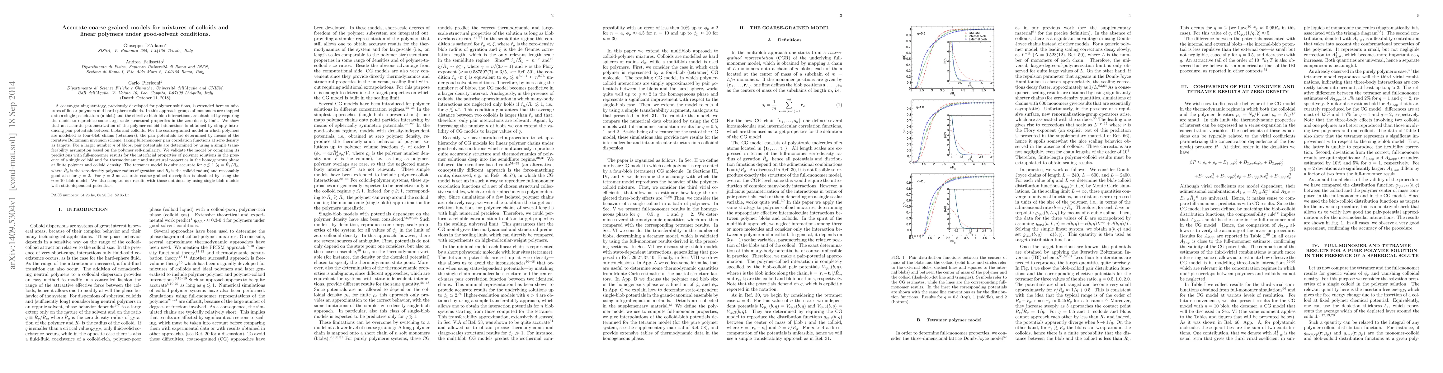 This paper extends a coarse-graining strategy to mixtures of linear polymers and hard-sphere colloids, mapping monomers onto pseudoatoms and determining effective interactions using the Boltzmann inversion scheme. The model accurately predicts interfacial and thermodynamic properties, with the tetramer model showing good accuracy for low polymer-to-colloid size ratios.