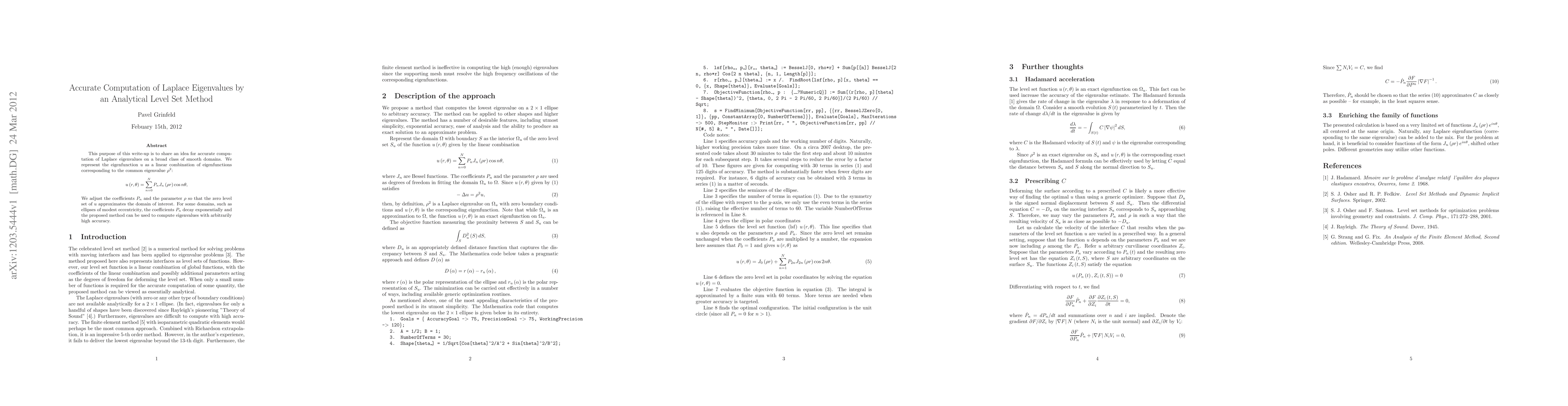 Researchers propose a method to accurately compute Laplace eigenvalues for smooth domains by representing an eigenfunction as a linear combination of known eigenfunctions. For certain domains, such as ellipses, this approach can achieve arbitrarily high accuracy.
