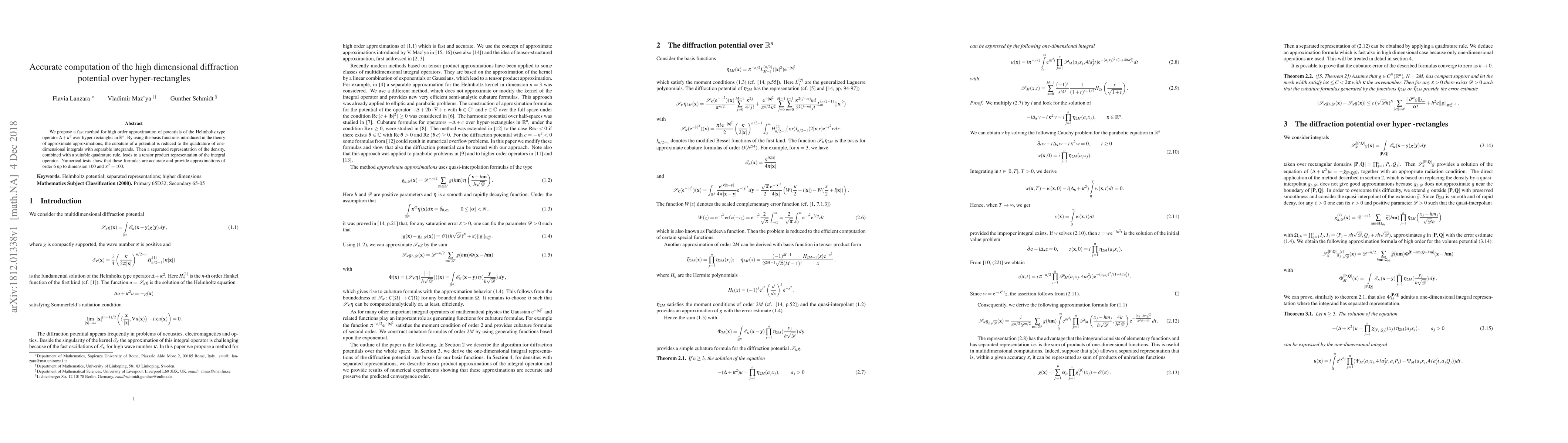We propose a fast method for high order approximation of potentials of the Helmholtz type operator Delta+kappa^2 over hyper-rectangles in R^n. By using the basis functions introduced in the theory of approximate approximations, the cubature of a potential is reduced to the quadrature of one-dimensional integrals with separable integrands. Then a separated representation of the density, combined with a suitable quadrature rule, leads to a tensor product representation of the integral operator. Numerical tests show that these formulas are accurate and provide approximations of order 6 up to dimension 100 and kappa^2=100.