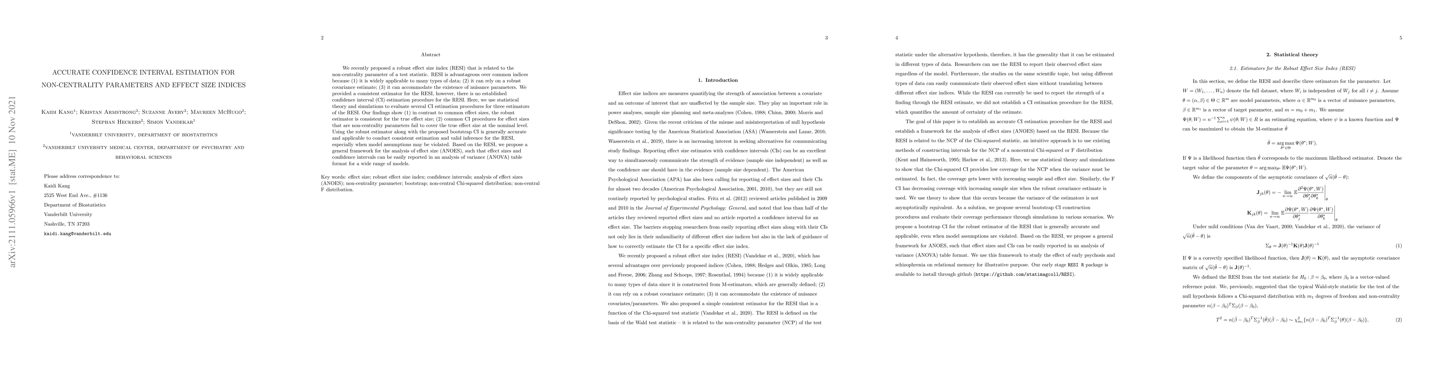 We recently proposed a robust effect size index (RESI) that is related to the non-centrality parameter of a test statistic. RESI is advantageous over common indices because (1) it is widely applicable to many types of data; (2) it can rely on a robust covariance estimate; (3) it can accommodate the existence of nuisance parameters. We provided a consistent estimator for the RESI, however, there is no established confidence interval (CI) estimation procedure for the RESI. Here, we use statistical theory and simulations to evaluate several CI estimation procedures for three estimators of the RESI. Our findings show (1) in contrast to common effect sizes, the robust estimator is consistent for the true effect size; (2) common CI procedures for effect sizes that are non-centrality parameters fail to cover the true effect size at the nominal level. Using the robust estimator along with the proposed bootstrap CI is generally accurate and applicable to conduct consistent estimation and valid inference for the RESI, especially when model assumptions may be violated. Based on the RESI, we propose a general framework for the analysis of effect size (ANOES), such that effect sizes and confidence intervals can be easily reported in an analysis of variance (ANOVA) table format for a wide range of models