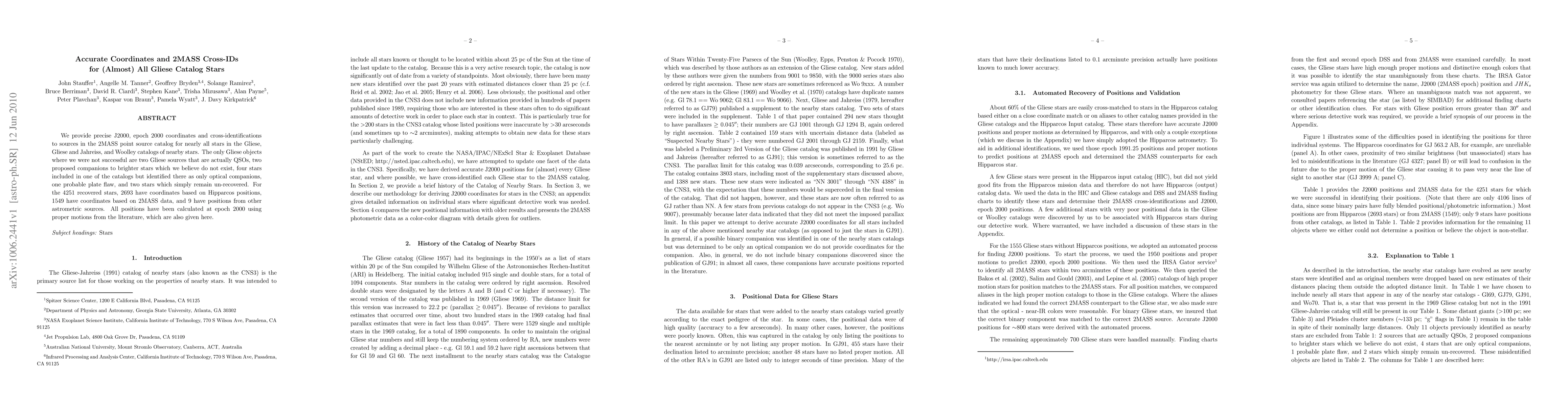Researchers have created precise coordinates for nearly all stars in the Gliese catalog, using data from 2MASS and Hipparcos sources, to improve their understanding of these nearby stars.