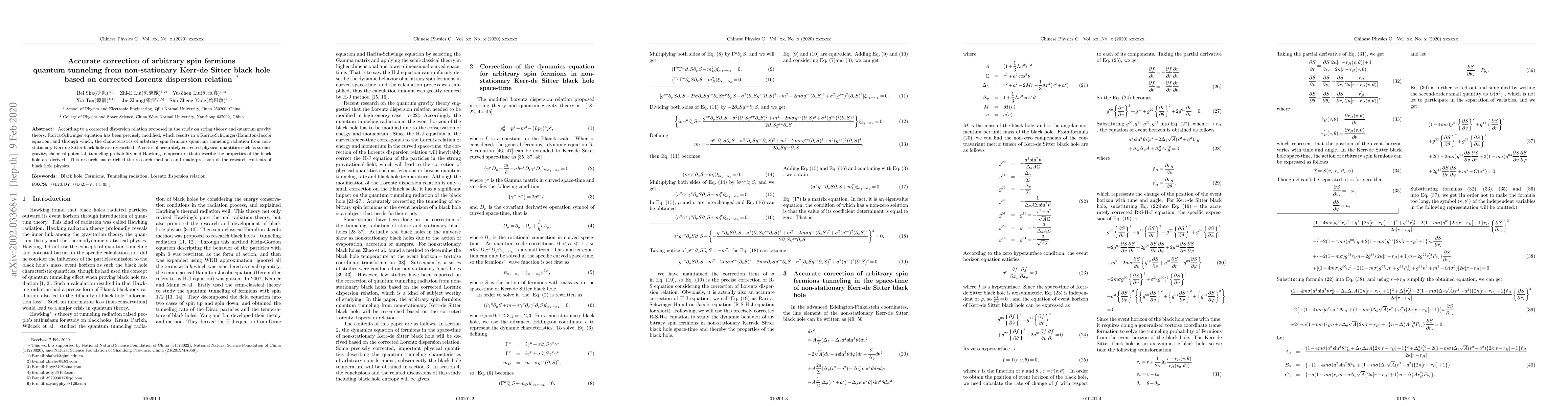 According to a corrected dispersion relation proposed in the study on string theory and quantum gravity theory, Rarita-Schwinger equation has been precisely modified, which results in a Rarita-Schwinger-Hamilton-Jacobi equation, and through which, the characteristics of arbitrary spin fermions quantum tunneling radiation from non-stationary Kerr-de Sitter black hole are researched. A series of accurately corrected physical quantities such as surface gravity, chemical potential, tunneling probability and Hawking temperature that describe the properties of the black hole are derived. This research has enriched the research methods and made precision of the research contents of black hole physics.