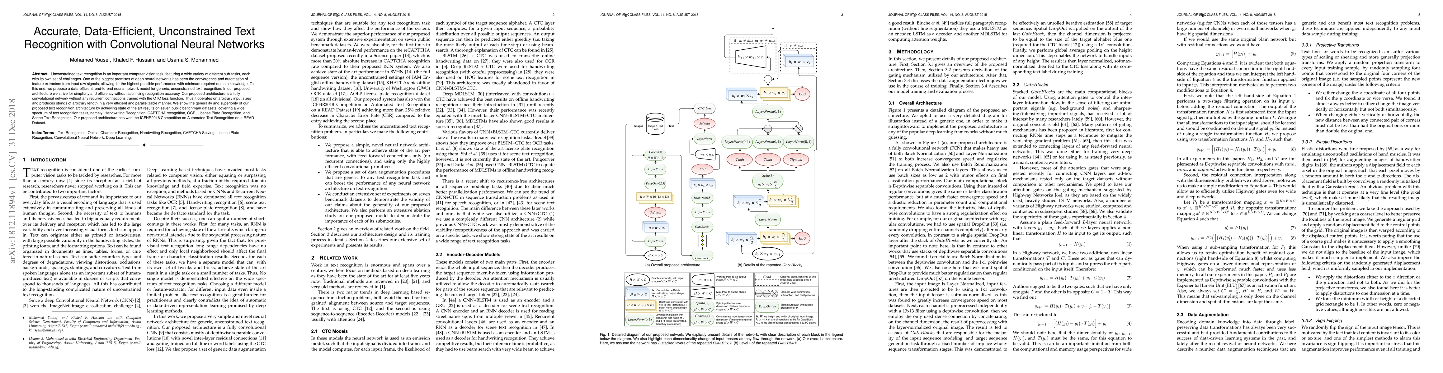 This paper proposes a data-efficient, end-to-end neural network model for generic, unconstrained text recognition, achieving state-of-the-art results on seven public benchmark datasets.