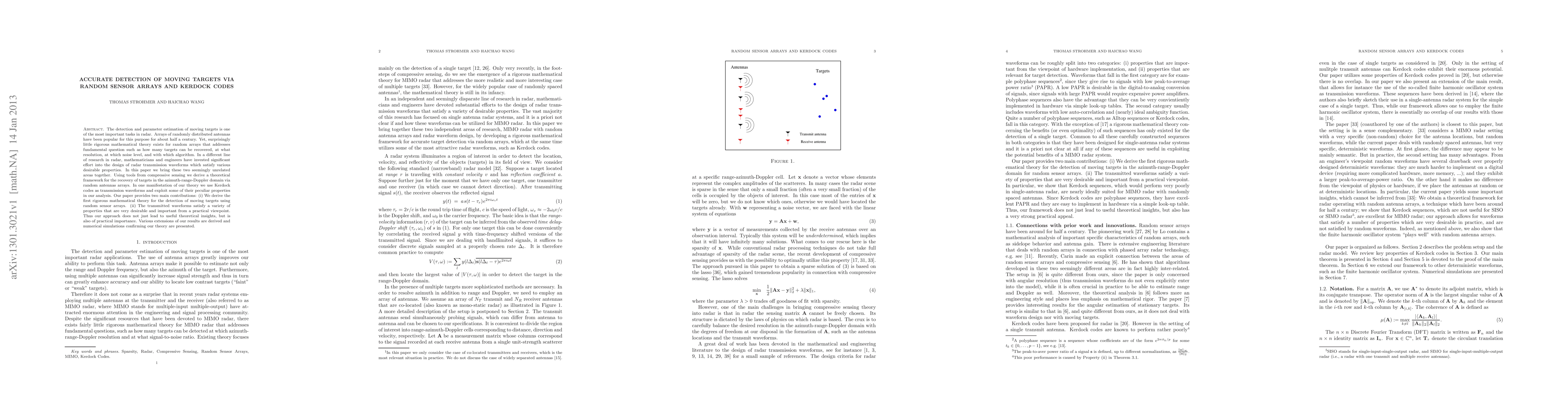 Researchers develop a new mathematical framework for detecting moving targets using random sensor arrays, combining concepts from compressive sensing and Kerdock codes to improve detection accuracy and efficiency.