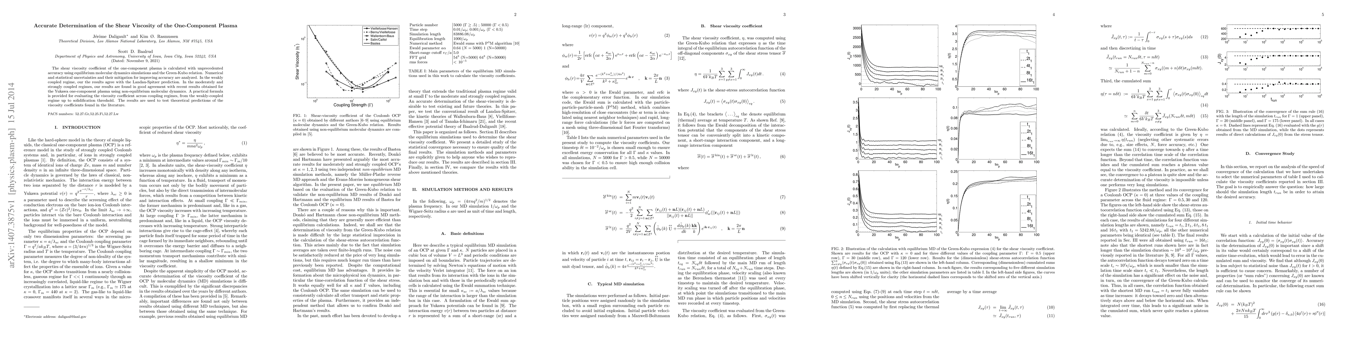 Equilibrium MD simulation was used to calculate the shear viscosity of one-component plasmas.