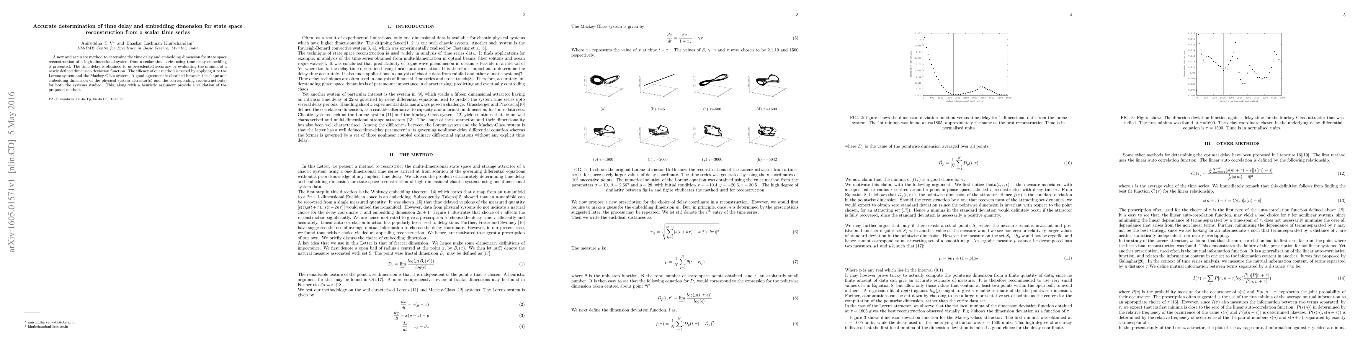A new method accurately determines time delay and embedding dimension for state space reconstruction from a scalar time series, showing good agreement with physical system attractors in two studied systems: the Lorenz system and the Mackey-Glass system.