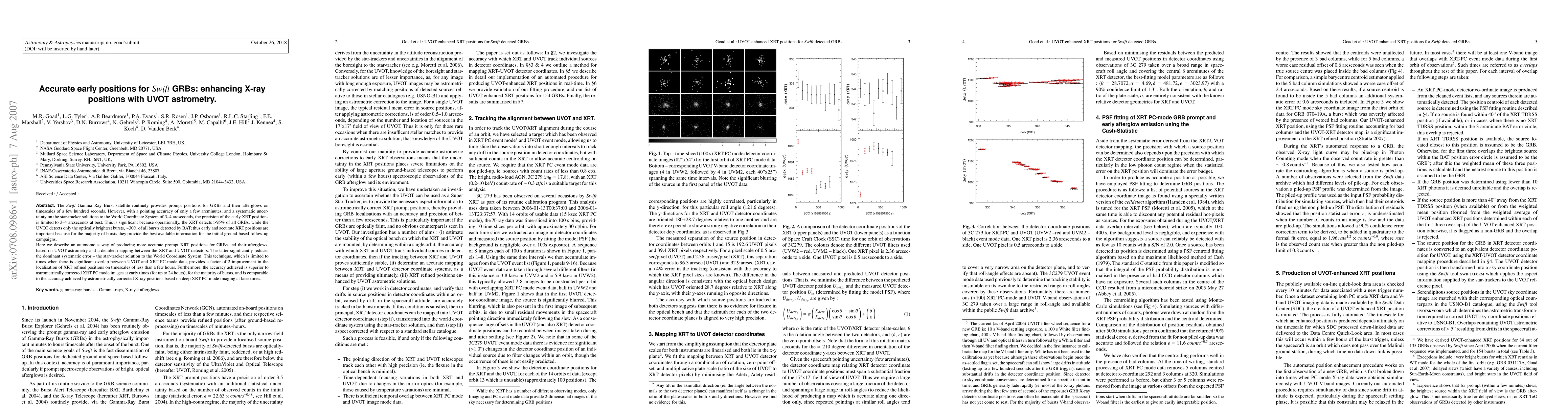 Here we describe an autonomous way of producing more accurate prompt XRT positions for Swift-detected GRBs and their afterglows, based on UVOT astrometry and a detailed mapping between the XRT and UVOT detectors. The latter significantly reduces the dominant systematic error -- the star-tracker solution to the World Coordinate System. This technique, which is limited to times when there is significant overlap between UVOT and XRT PC-mode data, provides a factor of 2 improvement in the localisation of XRT refined positions on timescales of less than a few hours. Furthermore, the accuracy achieved is superior to astrometrically corrected XRT PC mode images at early times (for up to 24 hours), for the majority of bursts, and is comparable to the accuracy achieved by astrometrically corrected X-ray positions based on deep XRT PC-mode imaging at later times (abridged).