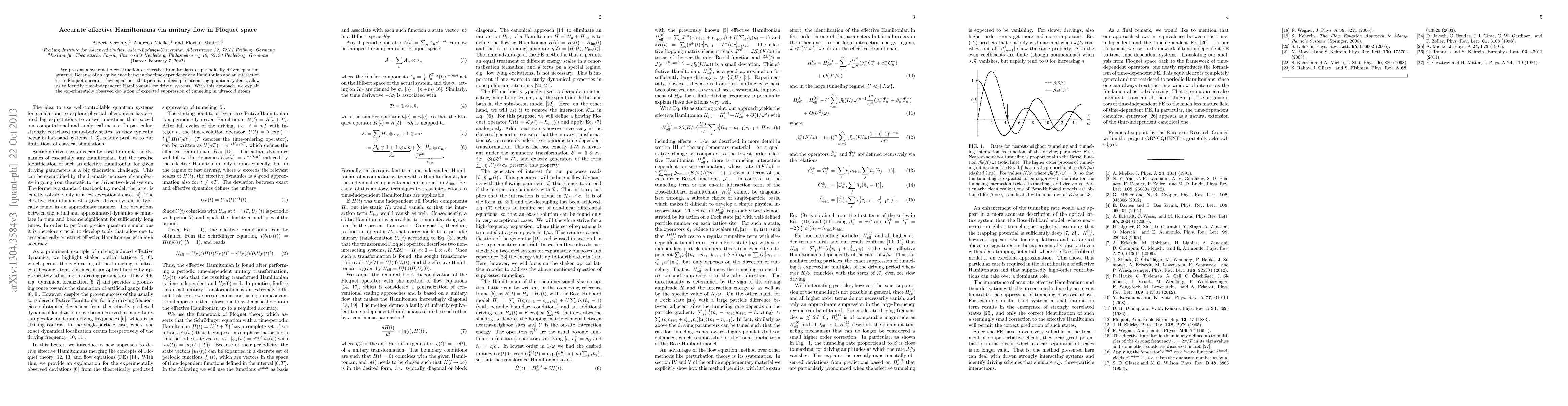 This paper presents a method for constructing effective Hamiltonians for periodically driven quantum systems using unitary flow in Floquet space, enabling the identification of time-independent Hamiltonians and explaining observed deviations in tunneling suppression in ultracold atoms.
