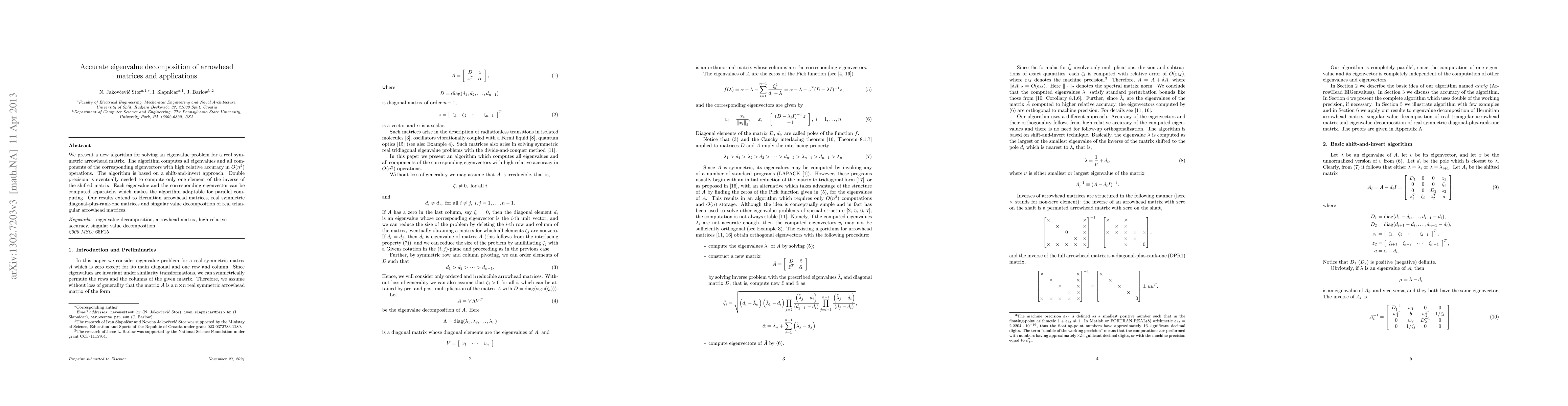 We present a new algorithm for solving an eigenvalue problem for a real symmetric arrowhead matrix. The algorithm computes all eigenvalues and all components of the corresponding eigenvectors with high relative accuracy in $O(n^{2})$ operations. The algorithm is based on a shift-and-invert approach. Double precision is eventually needed to compute only one element of the inverse of the shifted matrix. Each eigenvalue and the corresponding eigenvector can be computed separately, which makes the algorithm adaptable for parallel computing. Our results extend to Hermitian arrowhead matrices, real symmetric diagonal-plus-rank-one matrices and singular value decomposition of real triangular arrowhead matrices.