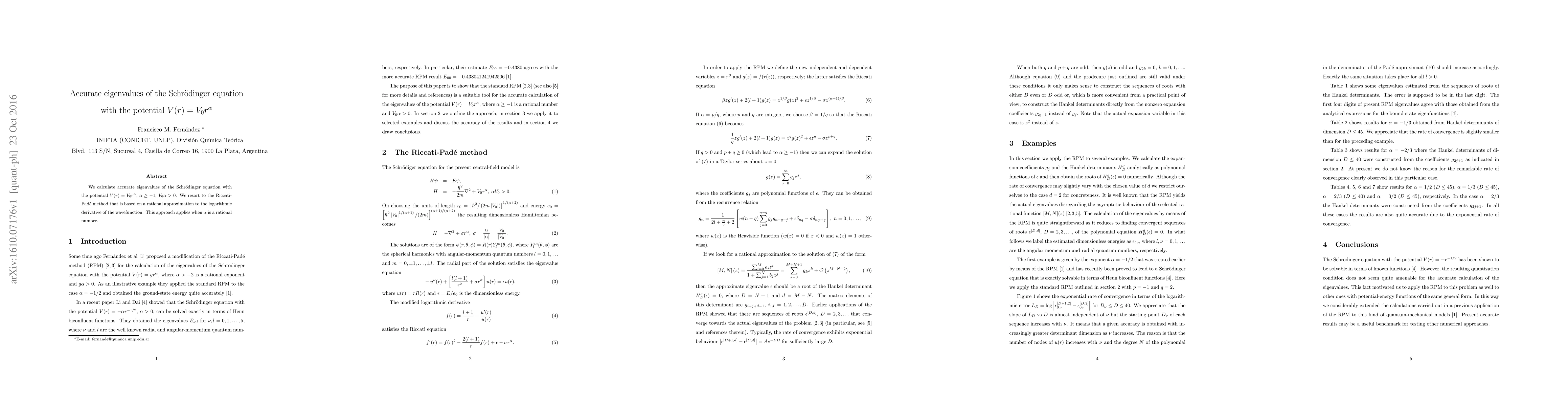 We calculate accurate eigenvalues of the Schr\"odinger equation with the potential $V(r)=V_{0}r^{\alpha}$, $\alpha \geq -1$, $V_{0}\alpha >0$. We resort to the Riccati-Pad\'e method that is based on a rational approximation to the logarithmic derivative of the wavefunction. This approach applies when $\alpha $ is a rational number.