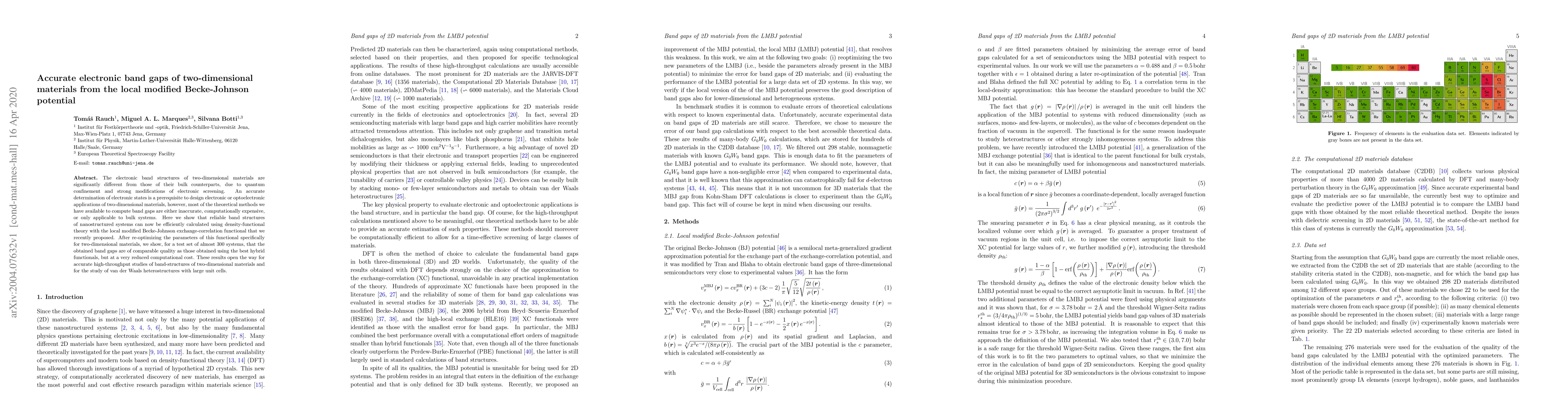 This paper demonstrates that the local modified Becke-Johnson potential in density-functional theory can accurately calculate electronic band gaps for two-dimensional materials, offering a cost-effective alternative to hybrid functionals. The optimized functional provides reliable band structures for a wide range of nanostructured systems.
