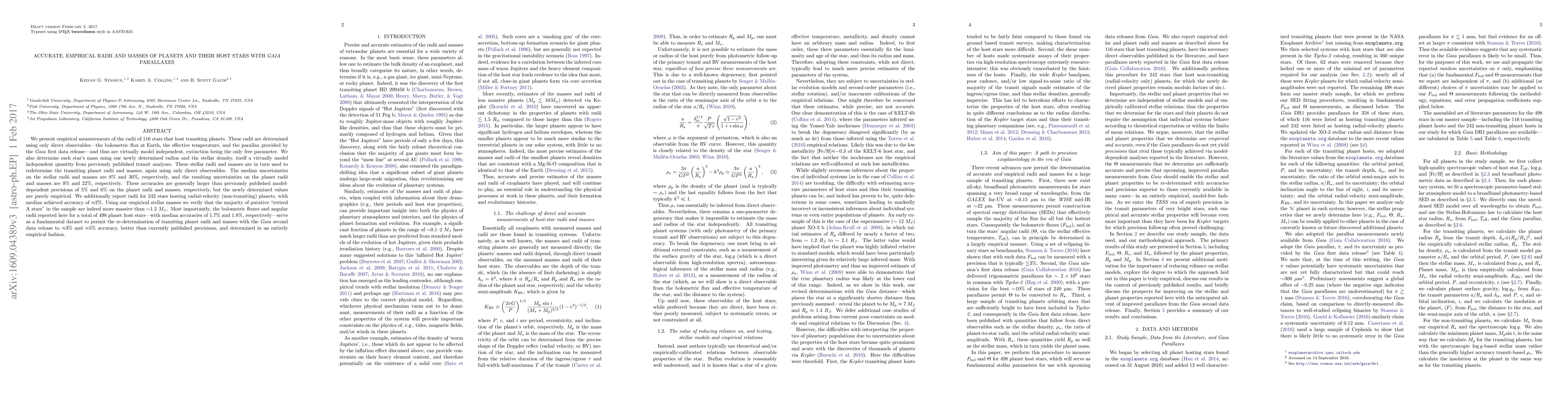 This paper provides empirical measurements of radii and masses for 116 stars hosting transiting planets, using Gaia parallaxes and direct observables, achieving median uncertainties of ~8% and ~30% respectively. The study also reports improved accuracies for transiting planet radii and masses, surpassing previous model-dependent precisions.