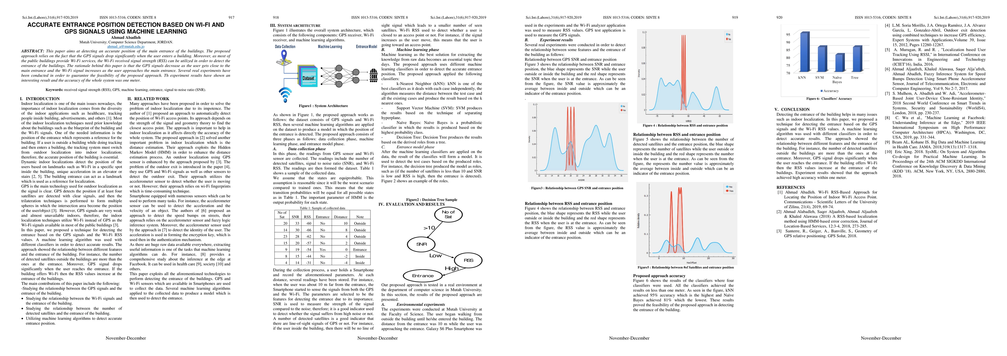 This paper aims at detecting an accurate position of the main entrance of the buildings. The proposed approach relies on the fact that the GPS signals drop significantly when the user enters a building. Moreover, as most of the public buildings provide Wi-Fi services, the Wi-Fi received signal strength (RSS) can be utilized in order to detect the entrance of the buildings. The rationale behind this paper is that the GPS signals decrease as the user gets close to the main entrance and the Wi-Fi signal increases as the user approaches the main entrance. Several real experiments have been conducted in order to guarantee the feasibility of the proposed approach. The experiment results have shown an interesting result and the accuracy of the whole system was one meter