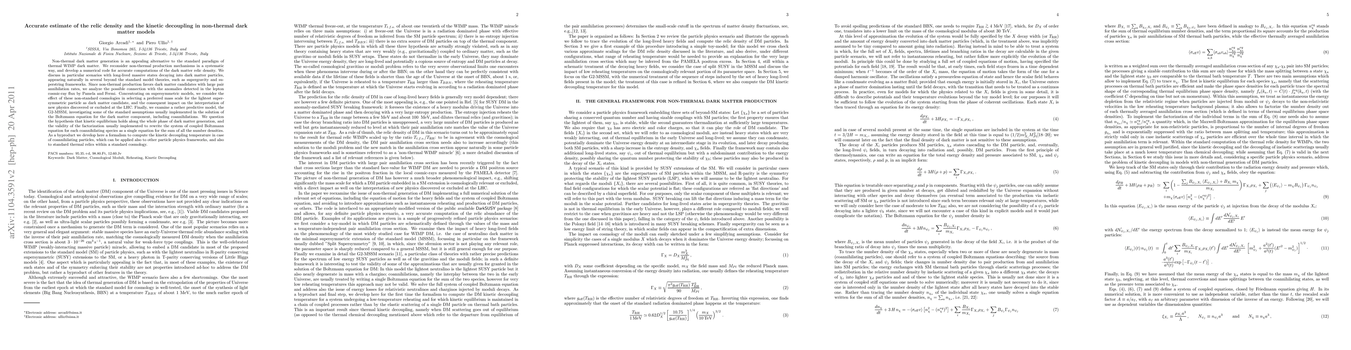 This paper develops a numerical code to accurately compute the relic density of non-thermal dark matter, focusing on scenarios where dark matter is produced through the decay of long-lived massive states. It questions the assumption of kinetic equilibrium during dark matter generation and proposes a new formalism for calculating the kinetic decoupling temperature, applicable to both non-thermal and thermal dark matter scenarios.