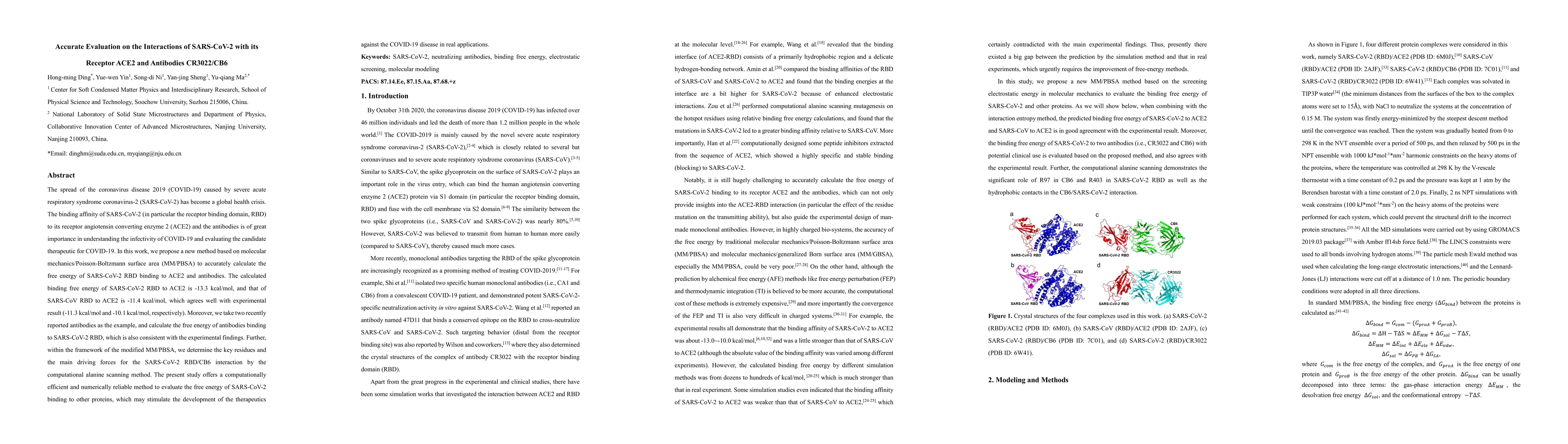 This paper proposes a new MM/PBSA method to accurately calculate the binding free energy of SARS-CoV-2 RBD to ACE2 and antibodies, finding key residues and driving forces for the interaction, and providing a reliable computational tool for evaluating COVID-19 therapeutics.