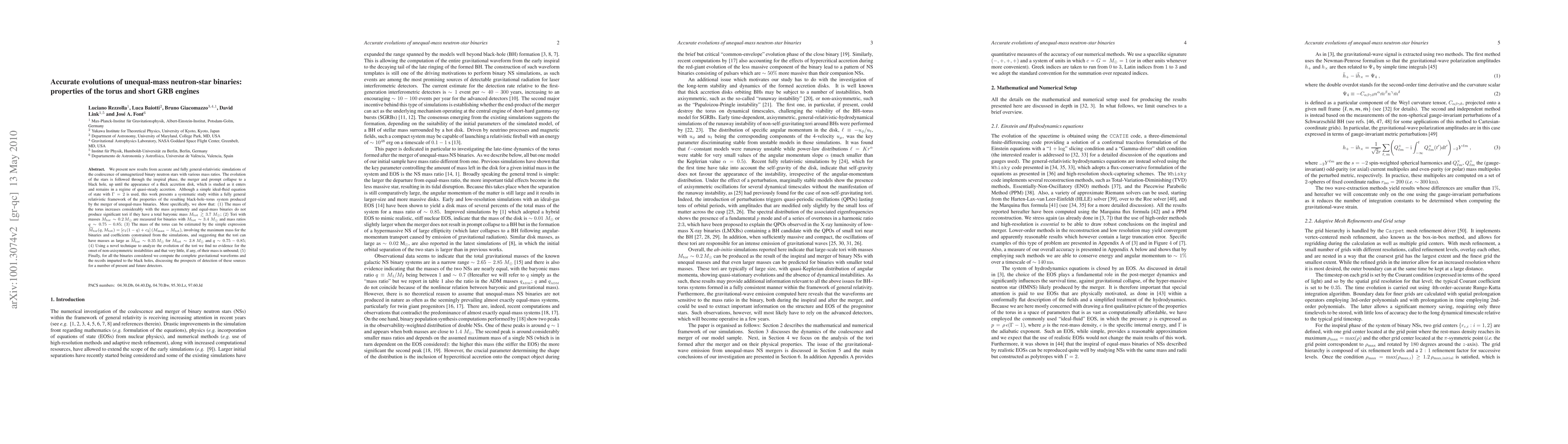 We present new results from accurate and fully general-relativistic simulations of the coalescence of unmagnetized binary neutron stars with various mass ratios. The evolution of the stars is followed through the inspiral phase, the merger and prompt collapse to a black hole, up until the appearance of a thick accretion disk, which is studied as it enters and remains in a regime of quasi-steady accretion. Although a simple ideal-fluid equation of state with \Gamma=2 is used, this work presents a systematic study within a fully general relativistic framework of the properties of the resulting black-hole--torus system produced by the merger of unequal-mass binaries. More specifically, we show that: (1) The mass of the torus increases considerably with the mass asymmetry and equal-mass binaries do not produce significant tori if they have a total baryonic mass M_tot >~ 3.7 M_sun; (2) Tori with masses M_tor ~ 0.2 M_sun are measured for binaries with M_tot ~ 3.4 M_sun and mass ratios q ~ 0.75-0.85; (3) The mass of the torus can be estimated by the simple expression M_tor(q, M_tot) = [c_1 (1-q) + c_2](M_max-M_tot), involving the maximum mass for the binaries and coefficients constrained from the simulations, and suggesting that the tori can have masses as large as M_tor ~ 0.35 M_sun for M_tot ~ 2.8 M_sun and q ~ 0.75-0.85; (4) Using a novel technique to analyze the evolution of the tori we find no evidence for the onset of non-axisymmetric instabilities and that very little, if any, of their mass is unbound; (5) Finally, for all the binaries considered we compute the complete gravitational waveforms and the recoils imparted to the black holes, discussing the prospects of detection of these sources for a number of present and future detectors.