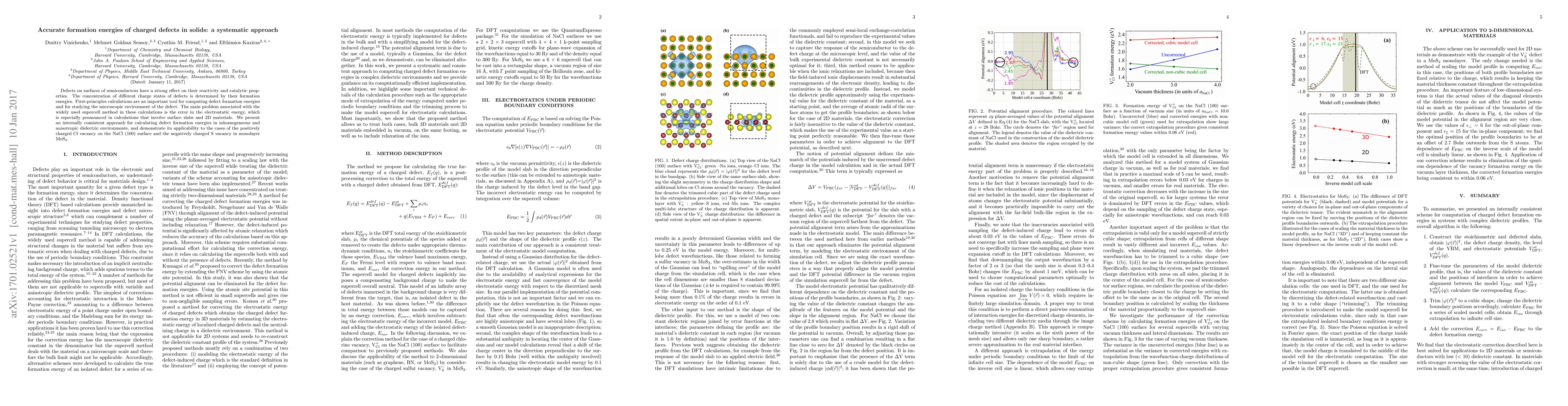 This research introduces a systematic method for accurately computing defect formation energies in solids, addressing the supercell method's electrostatic energy errors, particularly for surface slabs and 2D materials. The proposed approach is validated through applications to a Cl vacancy on NaCl and a S vacancy in monolayer MoS2.