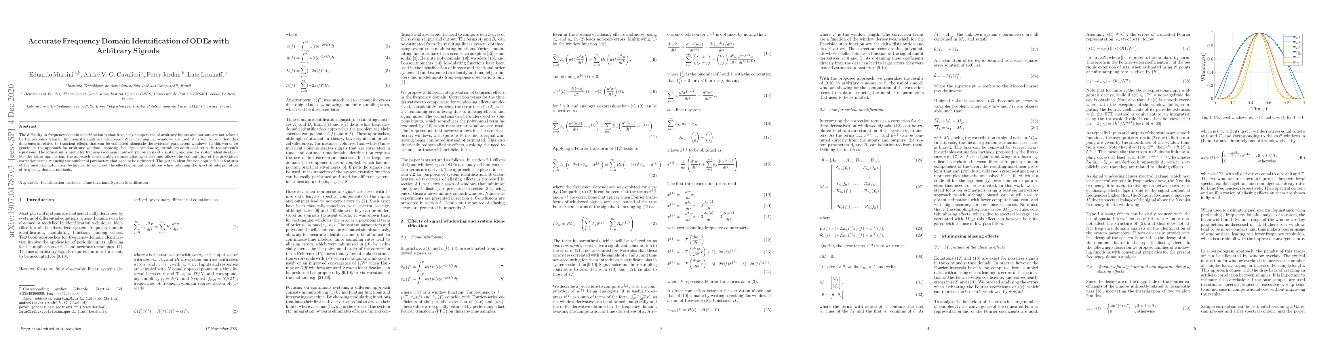 The difficulty in frequency domain identification is that frequency components of arbitrary inputs and outputs are not related by the system's transfer function if signals are windowed. When rectangular windows are used, it is well known that this difference is related to transient effects that can be estimated alongside the systems' parameters windows. In this work, we generalize the approach for arbitrary windows, showing that signal windowing introduces additional terms in the system's equations. The formalism is useful for frequency-domain input-output analysis of a system, and also for system identification. For the latter application, the approach considerably reduces aliasing effects and allows the computation of the associated correction terms, reducing the number of parameters that need to be estimated. The system identification approach has features of the modulating-function technique, filtering out the effects of initial conditions while retaining the spectral interpretation of frequency-domain methods.