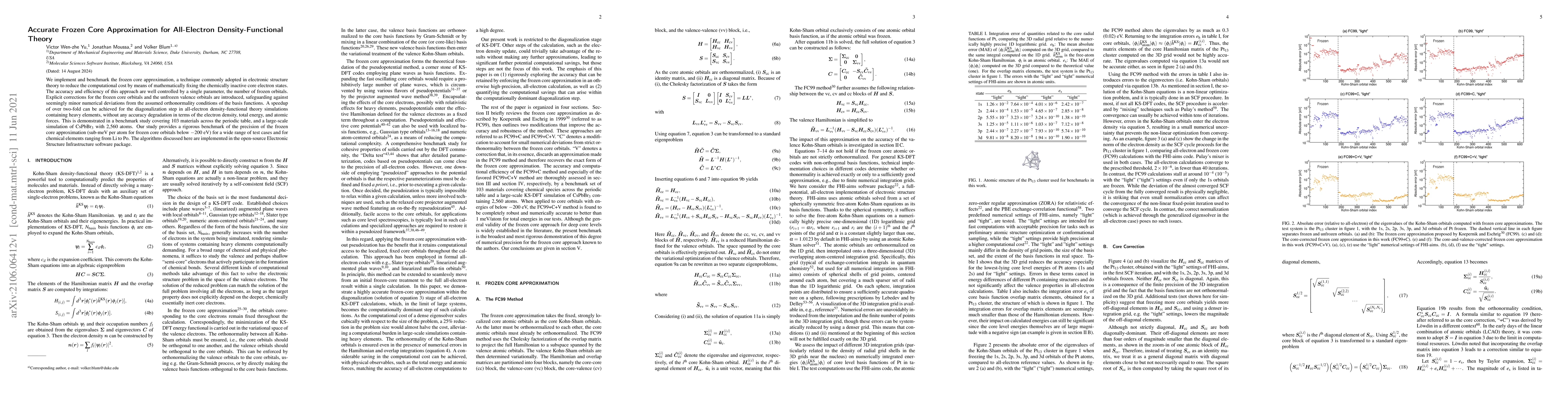 We implement and benchmark the frozen core approximation, a technique commonly adopted in electronic structure theory to reduce the computational cost by means of mathematically fixing the chemically inactive core electron states. The accuracy and efficiency of this approach are well controlled by a single parameter, the number of frozen orbitals. Explicit corrections for the frozen core orbitals and the unfrozen valence orbitals are introduced, safeguarding against seemingly minor numerical deviations from the assumed orthonormality conditions of the basis functions. A speedup of over two-fold can be achieved for the diagonalization step in all-electron density-functional theory simulations containing heavy elements, without any accuracy degradation in terms of the electron density, total energy, and atomic forces. This is demonstrated in a benchmark study covering 103 materials across the periodic table, and a large-scale simulation of CsPbBr3 with 2,560 atoms. Our study provides a rigorous benchmark of the precision of the frozen core approximation (sub-meV per atom for frozen core orbitals below -200 eV) for a wide range of test cases and for chemical elements ranging from Li to Po. The algorithms discussed here are implemented in the open-source Electronic Structure Infrastructure software package.