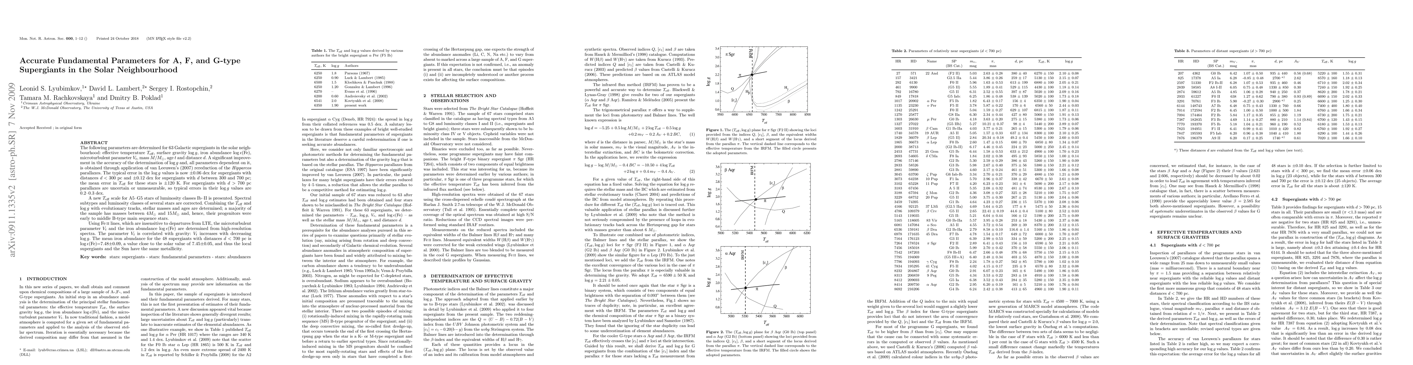 A study of 63 Galactic supergiants in the solar neighborhood yields accurate parameters, including masses between 4-15 Msun, ages, and iron abundance, with improved accuracy through re-reduced Hipparcos parallaxes.