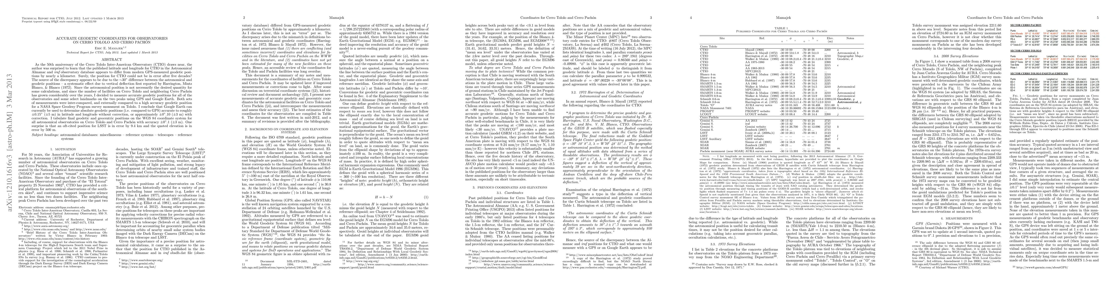 As the 50th anniversary of the Cerro Tololo Inter-American Observatory (CTIO) draws near, the author was surprised to learn that the published latitude and longitude for CTIO in the Astronomical Almanac and iraf observatory database appears to differ from modern GPS-measured geodetic positions by nearly a kilometer. Surely, the position for CTIO could not be in error after five decades? The source of the discrepancy appears to be due to the ~30" difference between the astronomical and geodetic positions -- a systematic effect due to vertical deflection first reported by Harrington, Mintz Blanco, & Blanco (1972). Since the astronomical position is not necessarily the desired quantity for some calculations, and since the number of facilities on Cerro Tololo and neighboring Cerro Pachon has grown considerably over the years, I decided to measure accurate geodetic positions for all of the observatories and some select landmarks on the two peaks using GPS and Google Earth. Both sets of measurements were inter-compared, and externally compared to a high accuracy geodetic position for a NASA Space Geodesy Program survey monument on Tololo. I conclude that Google Earth can currently be used to determine absolute geodetic positions (i.e. compared to GPS) accurate to roughly +-0.15" (+-5 m) in latitude and longitude without correction, or approximately +-0".10 (+-3 m) with correction. I tabulate final geodetic and geocentric positions on the WGS-84 coordinate system for all astronomical observatories on Cerro Tololo and Cerro Pachon with accuracy +-0".1 (+-3 m). One surprise is that an oft-cited position for LSST is in error by 9.4 km and the quoted elevation is in error by 500 m.