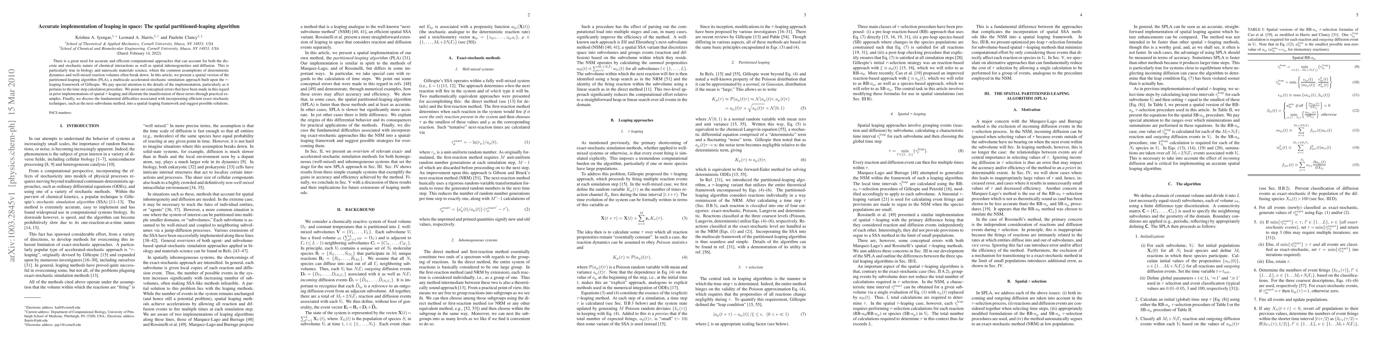 This paper introduces a spatial partitioned-leaping algorithm (PLA) for efficient and accurate simulation of stochastic chemical interactions, addressing issues in time step calculation and conceptual errors in prior spatial tau-leaping implementations. It also discusses the challenges of integrating exact-stochastic methods into spatial-leaping frameworks.