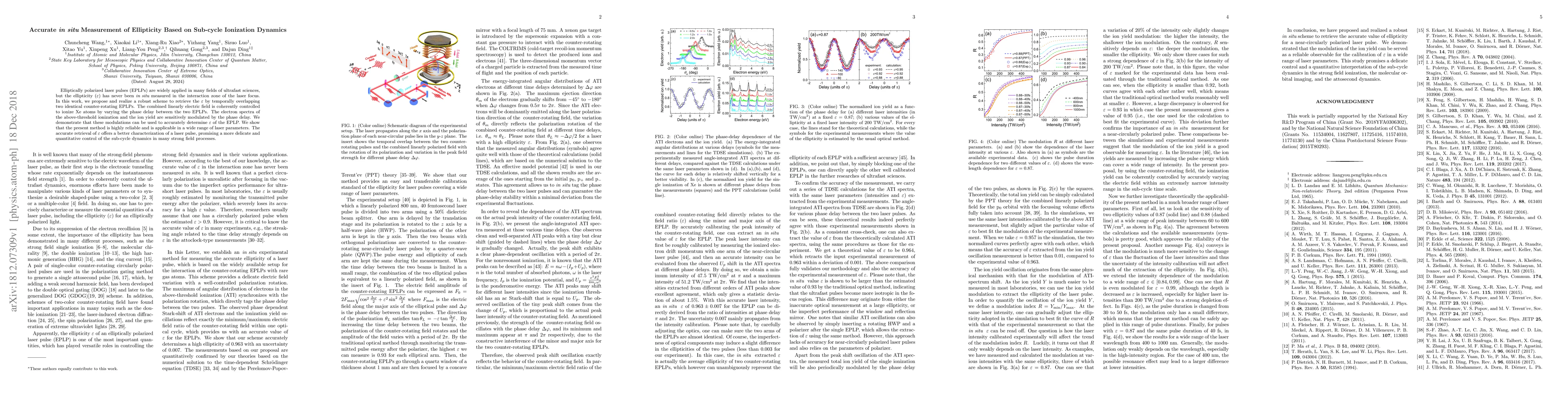 Elliptically polarized laser pulses (EPLPs) are widely applied in many fields of ultrafast sciences, but the ellipticity~($\varepsilon$) has never been in situ measured in the interaction zone of the laser focus. In this work, we propose and realize a robust scheme to retrieve the $\varepsilon$ by temporally overlapping two identical counter-rotating EPLPs. The combined linearly electric field is coherently controlled to ionize Xe atoms by varying the phase delay between the two EPLPs. The electron spectra of the above-threshold ionization and the ion yield are sensitively modulated by the phase delay. We demonstrate that these modulations can be used to accurately determine $\varepsilon$ of the EPLP. We show that the present method is highly reliable and is applicable in a wide range of laser parameters. The accurate retrieval of $\varepsilon$ offers a better characterization of a laser pulse, promising a more delicate and quantitative control of the sub-cycle dynamics in many strong field processes.