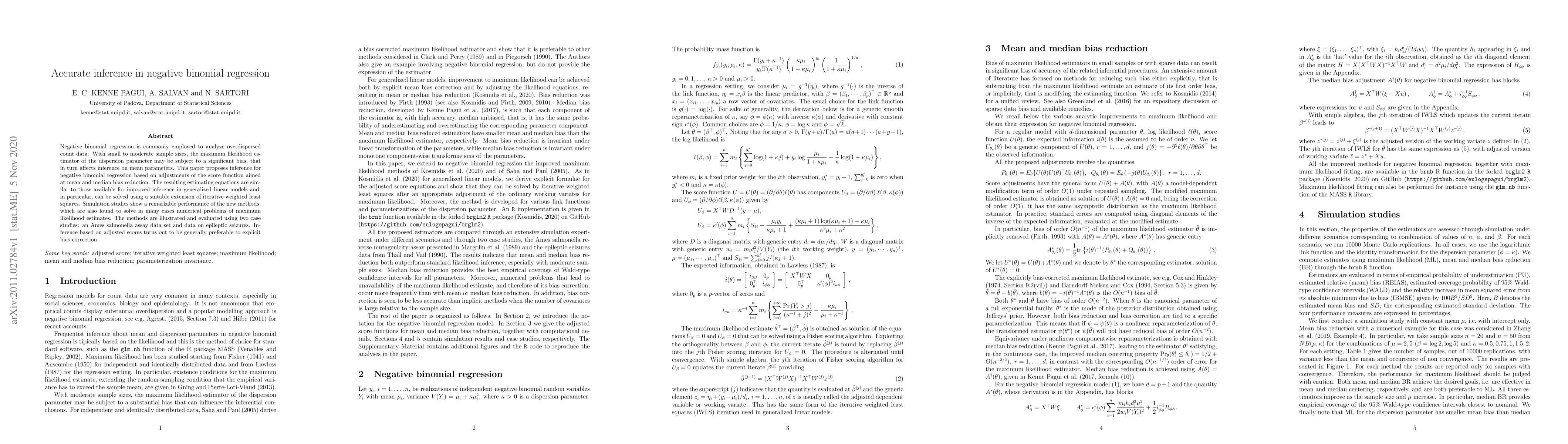 This paper proposes improved inference methods for negative binomial regression to address bias in the dispersion parameter, using adjusted score functions to reduce mean and median bias. Simulation studies demonstrate the effectiveness of these methods, which are also shown to resolve numerical issues with maximum likelihood estimates.