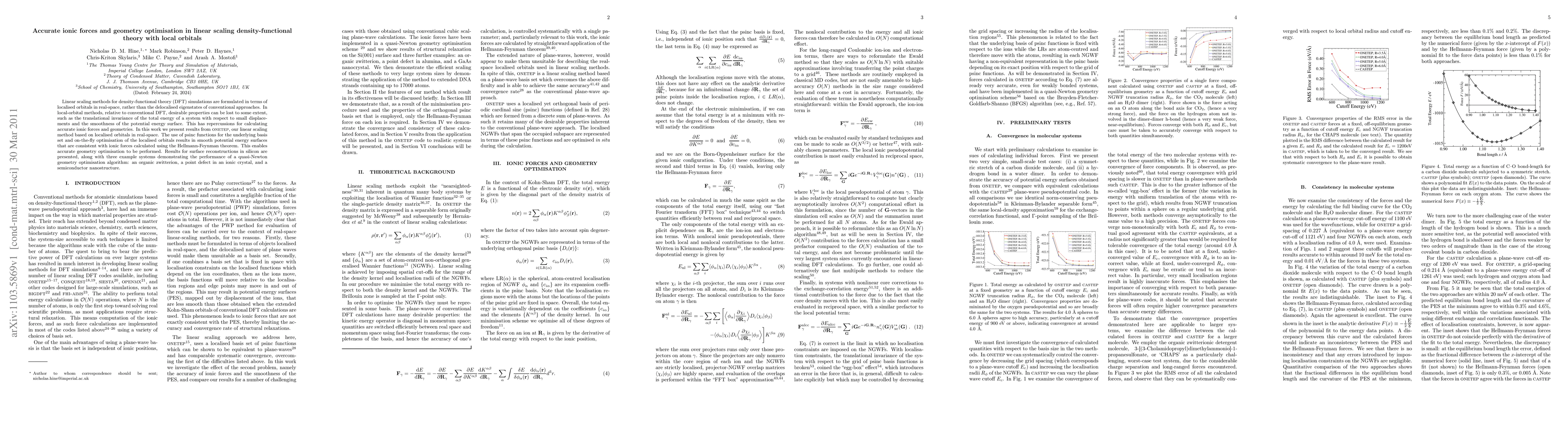 This paper introduces a linear scaling density-functional theory method using localised orbitals in real-space, which maintains smooth potential energy surfaces and accurate ionic forces via the Hellmann-Feynman theorem, enabling precise geometry optimisation. The method is demonstrated through surface reconstructions in silicon and three diverse systems.
