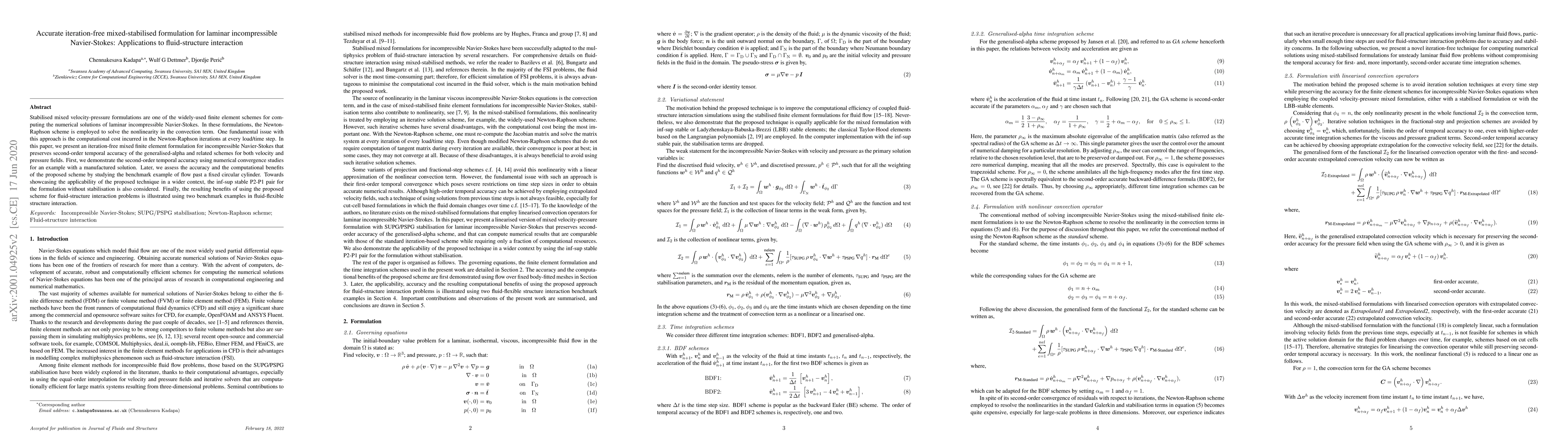 This paper introduces an iteration-free mixed finite element formulation for solving laminar incompressible Navier-Stokes equations, demonstrating second-order temporal accuracy without Newton-Raphson iterations. It showcases computational benefits and accuracy through benchmark examples, including fluid-structure interaction scenarios.