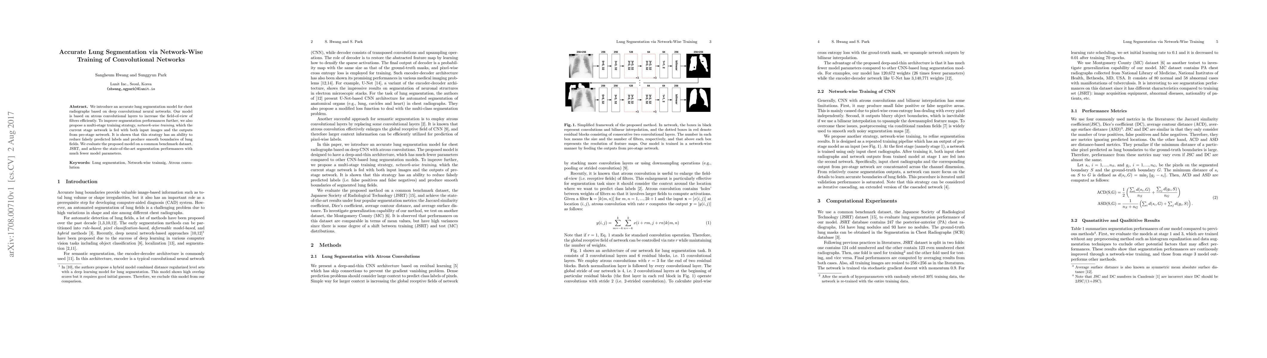 A new deep learning model accurately segments lung fields from chest radiographs using a multi-stage training strategy that improves segmentation performance with fewer parameters.