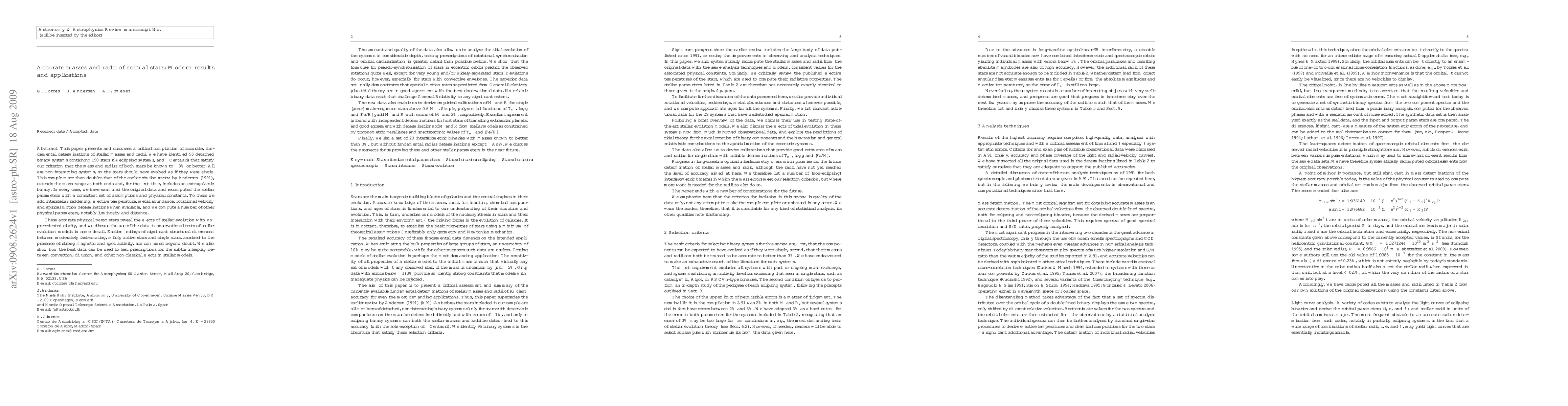 This paper presents and discusses a critical compilation of accurate, fundamental determinations of stellar masses and radii. We have identified 95 detached binary systems containing 190 stars (94 eclipsing systems, and alpha Centauri) that satisfy our criterion that the mass and radius of both stars be known to 3% or better. To these we add interstellar reddening, effective temperature, metal abundance, rotational velocity and apsidal motion determinations when available, and we compute a number of other physical parameters, notably luminosity and distance. We discuss the use of this information for testing models of stellar evolution. The amount and quality of the data also allow us to analyse the tidal evolution of the systems in considerable depth, testing prescriptions of rotational synchronisation and orbital circularisation in greater detail than possible before. The new data also enable us to derive empirical calibrations of M and R for single (post-) main-sequence stars above 0.6 M(Sun). Simple, polynomial functions of T(eff), log g and [Fe/H] yield M and R with errors of 6% and 3%, respectively. Excellent agreement is found with independent determinations for host stars of transiting extrasolar planets, and good agreement with determinations of M and R from stellar models as constrained by trigonometric parallaxes and spectroscopic values of T(eff) and [Fe/H]. Finally, we list a set of 23 interferometric binaries with masses known to better than 3%, but without fundamental radius determinations (except alpha Aur). We discuss the prospects for improving these and other stellar parameters in the near future.