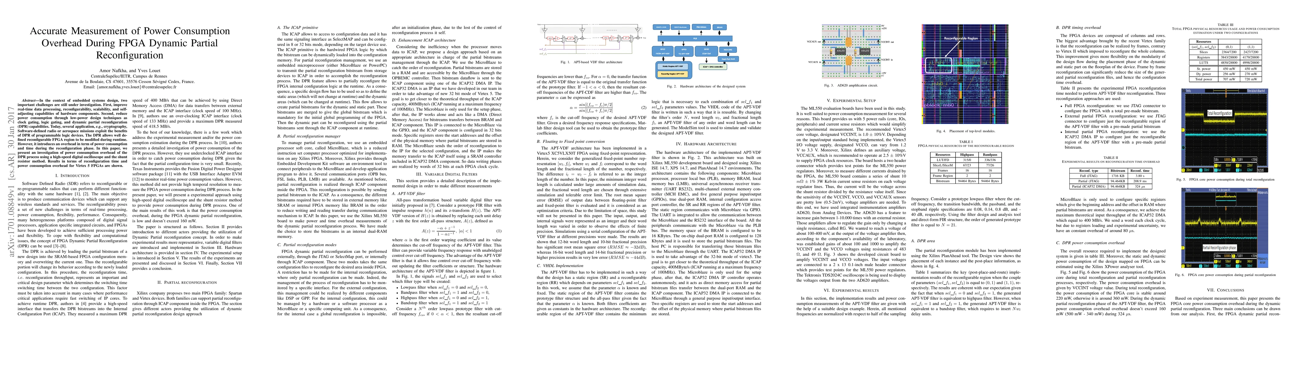 This paper investigates the power consumption overhead introduced during FPGA dynamic partial reconfiguration (DPR) using high-speed digital oscilloscopes and the shunt resistor method. It presents results on reconfiguration time and power consumption for Virtex 5 FPGAs, aiming to improve the understanding of DPR's impact on power efficiency in embedded systems.