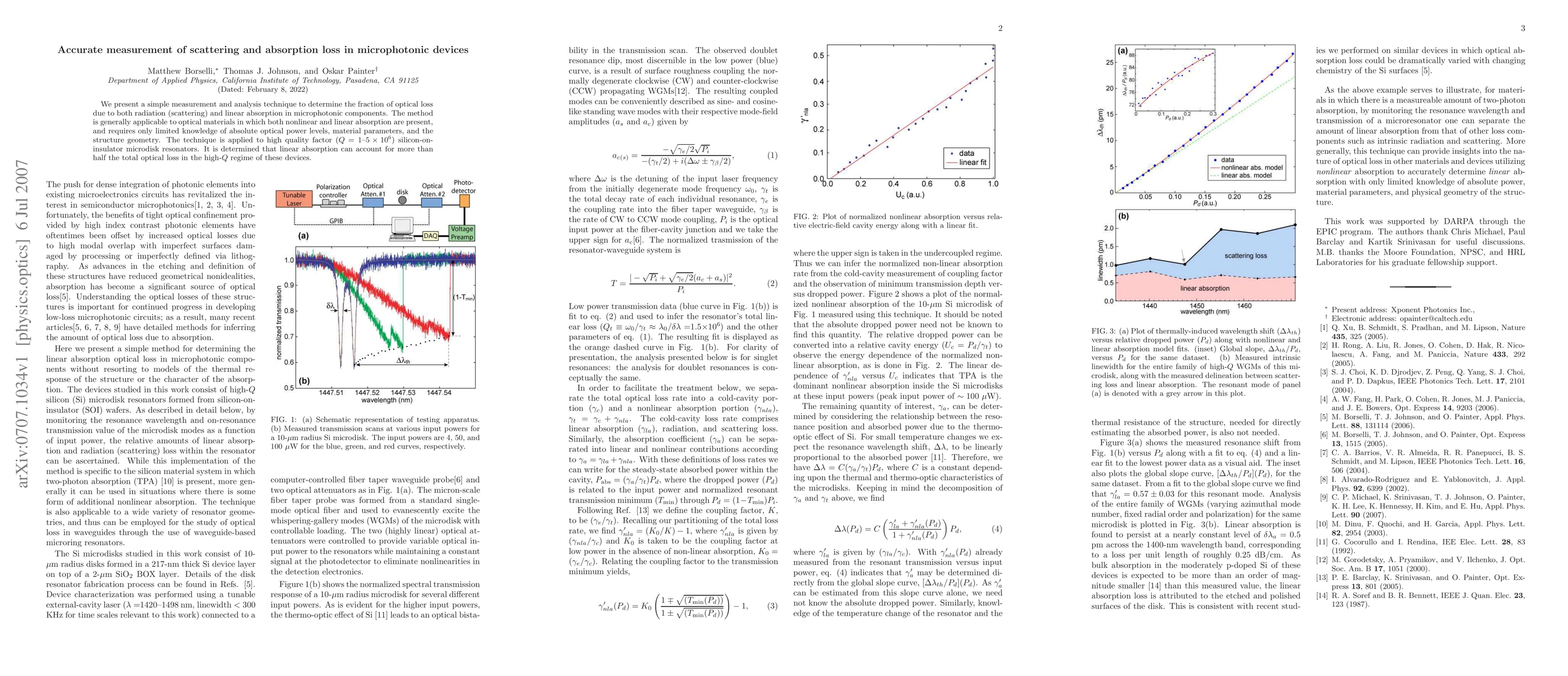 A new measurement technique accurately measures scattering and absorption loss in microphotonic devices, revealing that linear absorption accounts for more than half of optical loss in high-quality factor devices.
