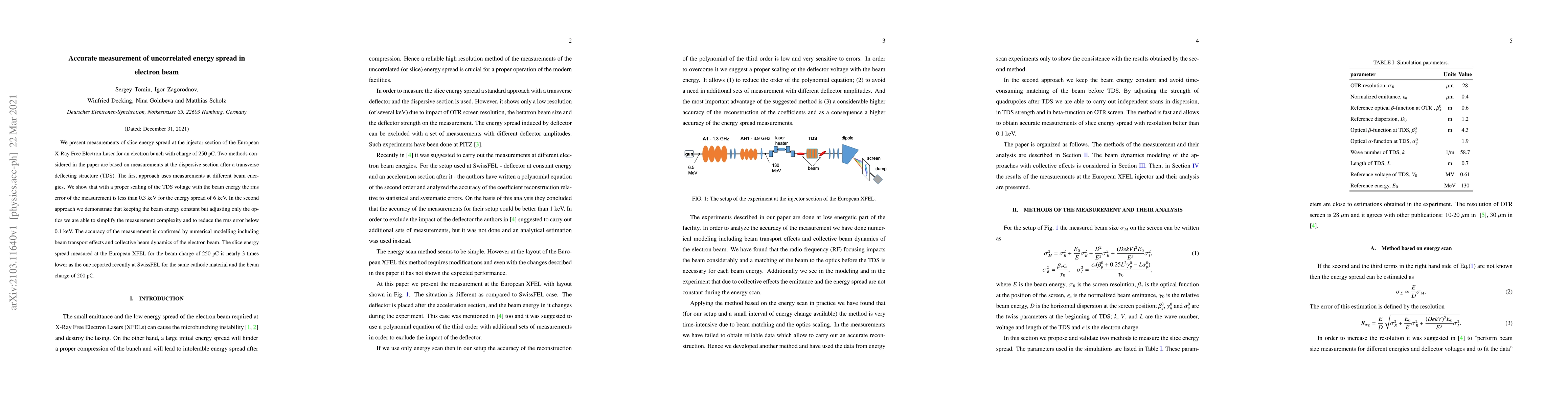 This paper measures the slice energy spread in an electron beam at the European XFEL, achieving an rms error of less than 0.1 keV using two methods. The first method scales TDS voltage with beam energy, while the second simplifies the measurement by adjusting optics, both confirmed by numerical modeling.