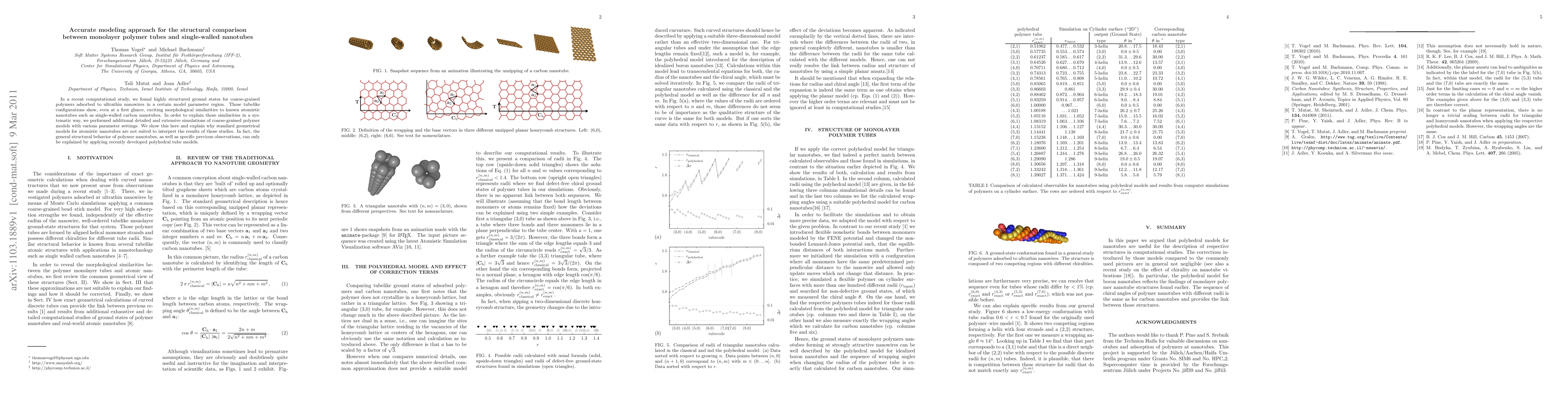 In a recent computational study, we found highly structured ground states for coarse-grained polymers adsorbed to ultrathin nanowires in a certain model parameter region. Those tubelike configurations show, even at a first glance, exciting morphological similarities to known atomistic nanotubes such as single-walled carbon nanotubes. In order to explain those similarities in a systematic way, we performed additional detailed and extensive simulations of coarse-grained polymer models with various parameter settings. We show this here and explain why standard geometrical models for atomistic nanotubes are not suited to interpret the results of those studies. In fact, the general structural behavior of polymer nanotubes, as well as specific previous observations, can only be explained by applying recently developed polyhedral tube models.