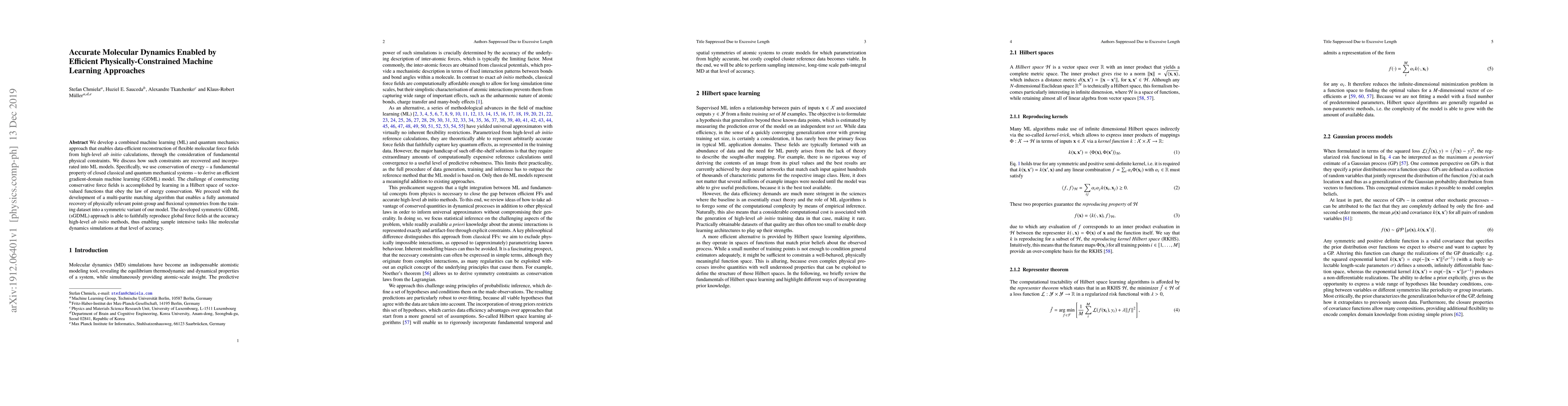 We develop a combined machine learning (ML) and quantum mechanics approach that enables data-efficient reconstruction of flexible molecular force fields from high-level ab initio calculations, through the consideration of fundamental physical constraints. We discuss how such constraints are recovered and incorporated into ML models. Specifically, we use conservation of energy - a fundamental property of closed classical and quantum mechanical systems -- to derive an efficient gradient-domain machine learning (GDML) model. The challenge of constructing conservative force fields is accomplished by learning in a Hilbert space of vector-valued functions that obey the law of energy conservation. We proceed with the development of a multi-partite matching algorithm that enables a fully automated recovery of physically relevant point-group and fluxional symmetries from the training dataset into a symmetric variant of our model. The developed symmetric GDML (sGDML) approach is able to faithfully reproduce global force fields at the accuracy high-level ab initio methods, thus enabling sample intensive tasks like molecular dynamics simulations at that level of accuracy.