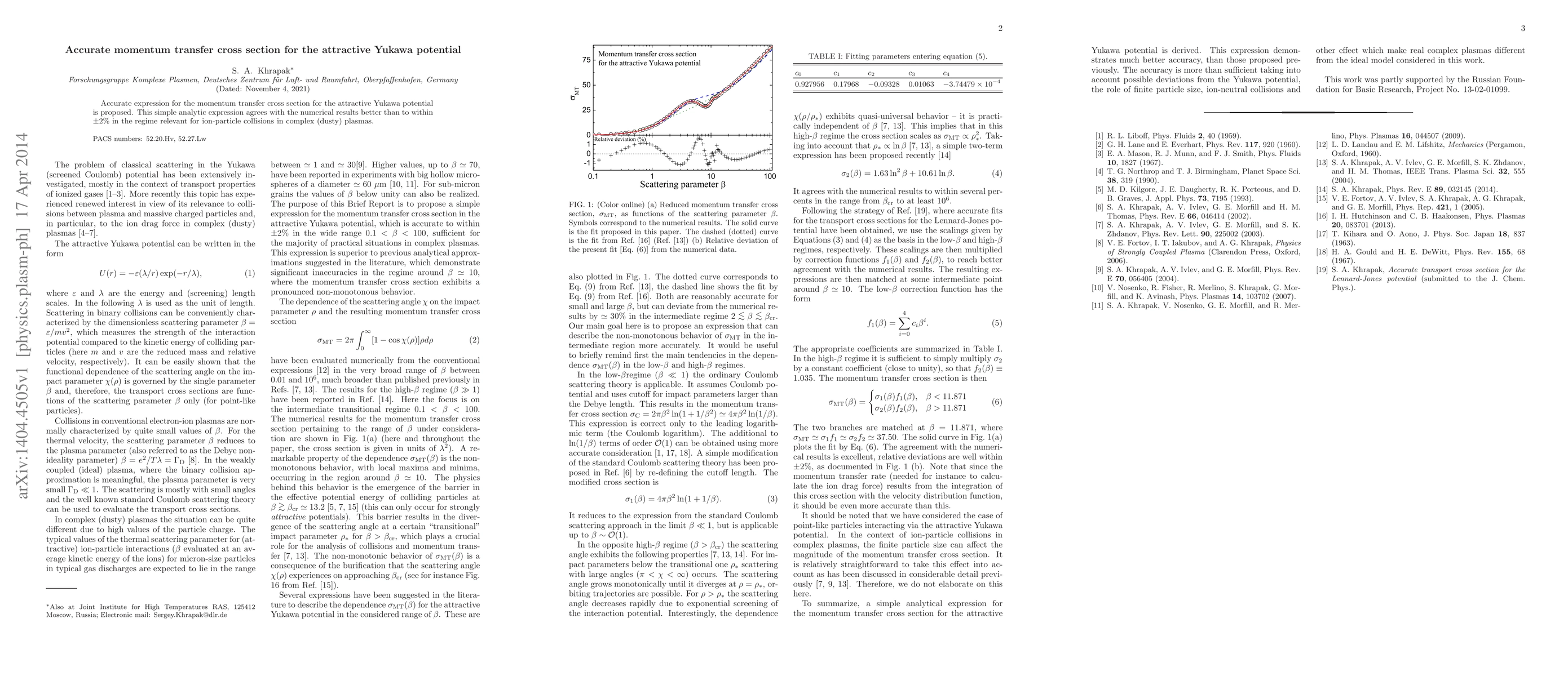 Accurate expression for the momentum transfer cross section for the attractive Yukawa potential is proposed. This simple analytic expression agrees with the numerical results better than to within $\pm 2\%$ in the regime relevant for ion-particle collisions in complex (dusty) plasmas.