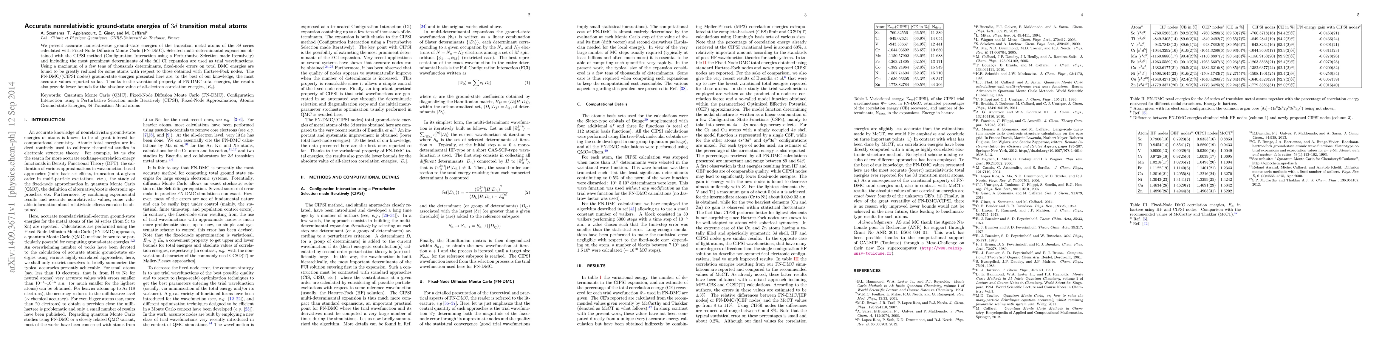 This paper reports highly accurate nonrelativistic ground-state energies for 3d transition metal atoms using Fixed-Node Diffusion Monte Carlo (FN-DMC) with CIPSI-derived trial wavefunctions, achieving significantly reduced fixed-node errors compared to Hartree-Fock methods. The FN-DMC/(CIPSI nodes) results are the most precise values reported, also serving as lower bounds for all-electron correlation energies.