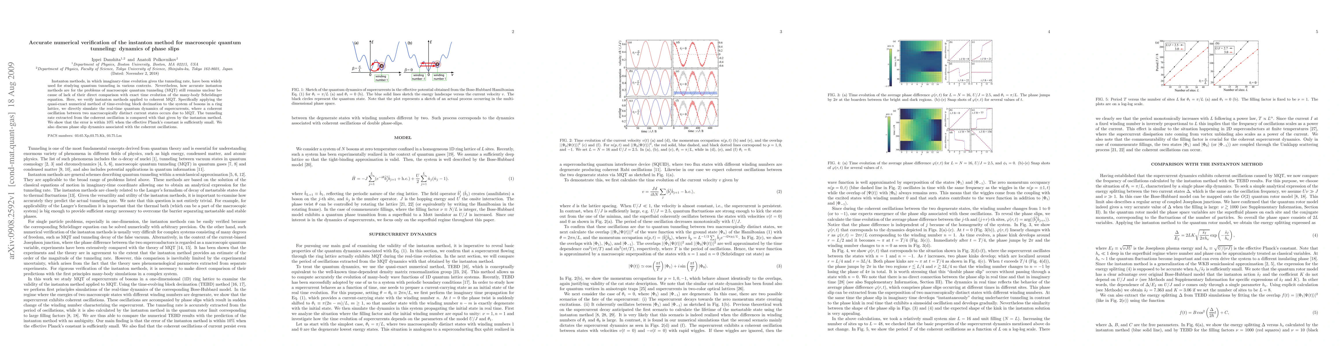 This paper verifies the accuracy of instanton methods for macroscopic quantum tunneling (MQT) by comparing them to exact time evolution simulations using the time-evolving block decimation method. The study finds that instanton methods are within 10% accuracy for small effective Planck's constant, and also examines the dynamics of phase slips associated with MQT.