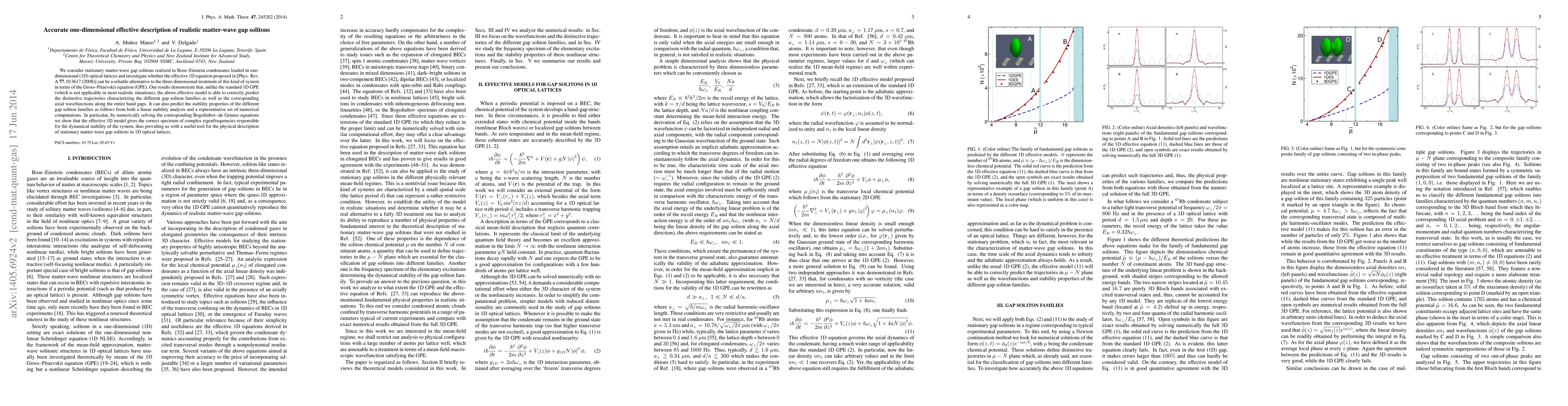 This paper investigates the reliability of an effective one-dimensional model for describing stationary matter-wave gap solitons in Bose-Einstein condensates within one-dimensional optical lattices. The effective 1D model accurately predicts soliton trajectories, axial wavefunctions, and stability properties, outperforming the standard 1D Gross-Pitaevskii equation.
