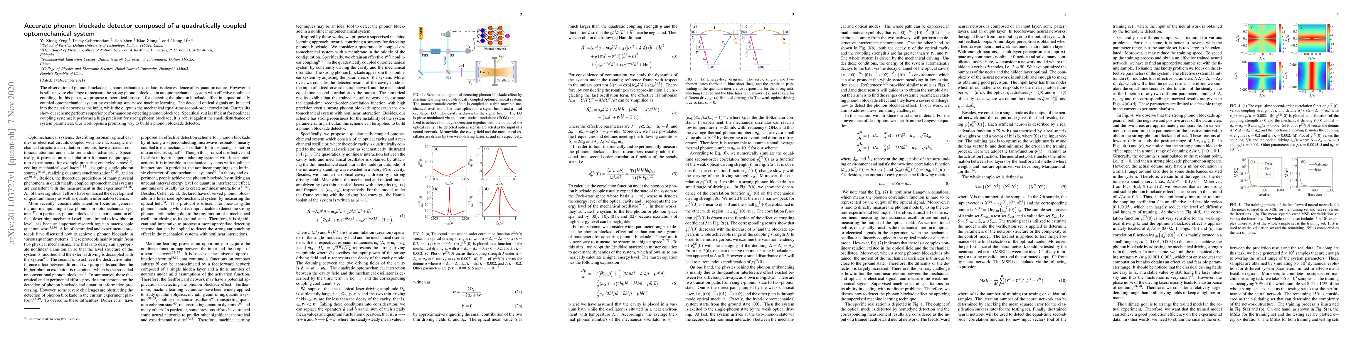 The observation of phonon blockade in a nanomechanical oscillator is clear evidence of its quantum nature. However, it is still a severe challenge to measure the strong phonon blockade in an optomechanical system with effective nonlinear coupling. In this paper, we propose a theoretical proposal for detecting the phonon blockade effect in a quadratically coupled optomechanical system by exploiting supervised machine learning. The detected optical signals are injected into the neural network as the input, while the output is the mechanical equal-time second-order correlation. Our results show our scheme performs superior performance on detecting phonon blockade. Specifically, it is efficient for nonlinear coupling systems; it performs a high precision for strong photon blockade; it is robust against the small disturbance of system parameters. Our work opens a promising way to build a phonon blockade detector.