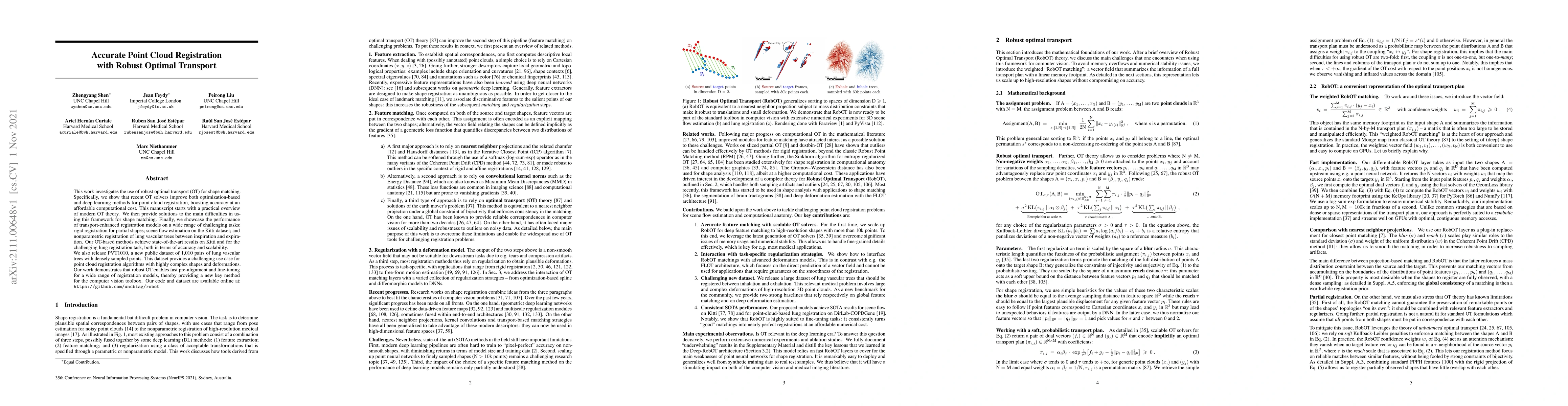 This paper explores robust optimal transport (OT) for point cloud registration, demonstrating improved accuracy and scalability in various tasks using OT-enhanced methods. The authors release a new dataset for lung vascular tree registration and show state-of-the-art results on the Kitti dataset and challenging lung registration tasks.