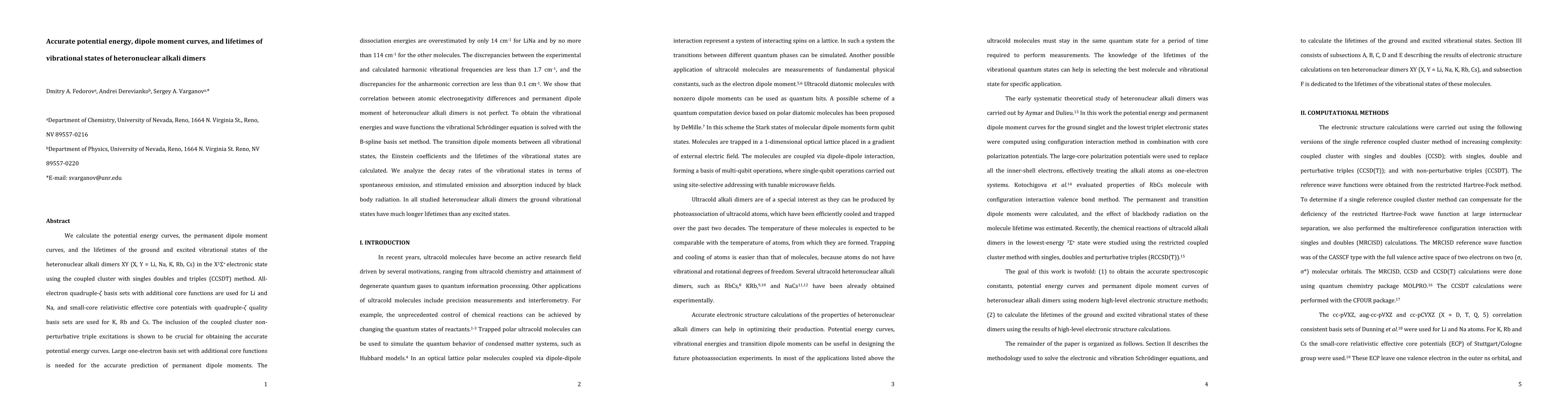 This paper presents highly accurate potential energy, dipole moment curves, and lifetimes for ground and excited vibrational states of heteronuclear alkali dimers (LiNa, LiK, LiRb, LiCs, NaK, NaRb, NaCs, K Rb, K Cs, RbCs) using CCSDT calculations. The study highlights the importance of non-perturbative triple excitations and large basis sets for precise results, showing minimal discrepancies with experimental data.