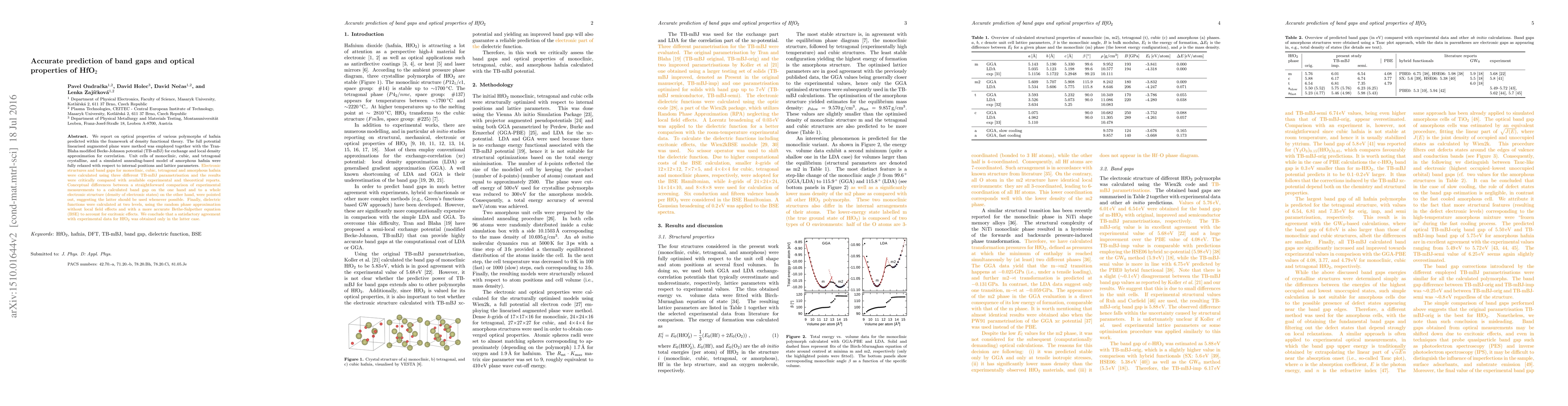 Researchers used density functional theory to predict optical properties of hafnia polymorphs, achieving agreement with experimental data and predicting dielectric function shifts.