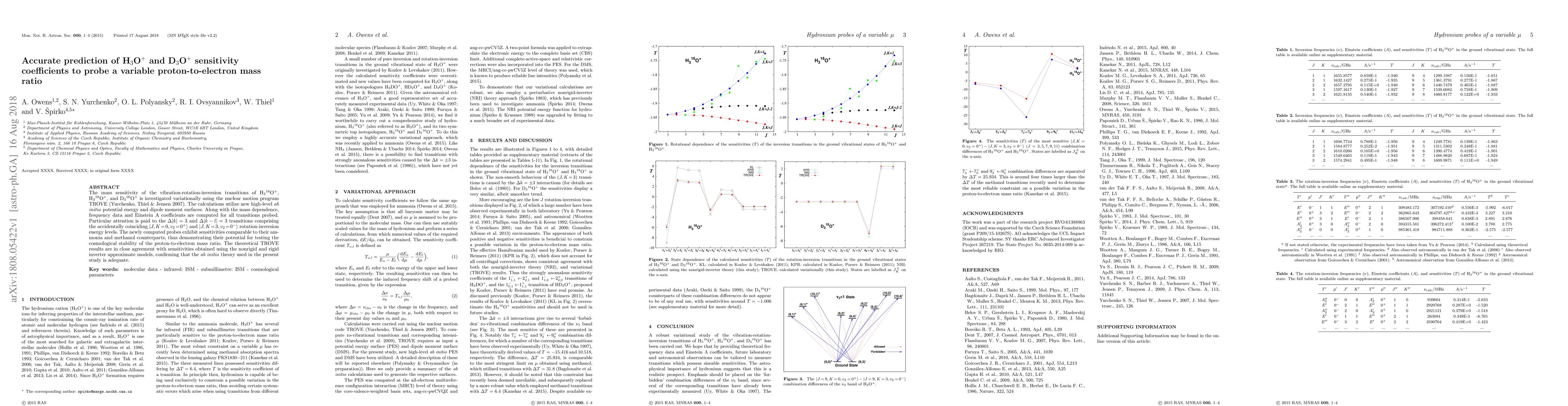 Researchers used new high-level ab initio calculations to predict the sensitivity of H3O+ and D3O+ molecules to a variable proton-to-electron mass ratio, finding sensitivities comparable to those of ammonia and methanol.