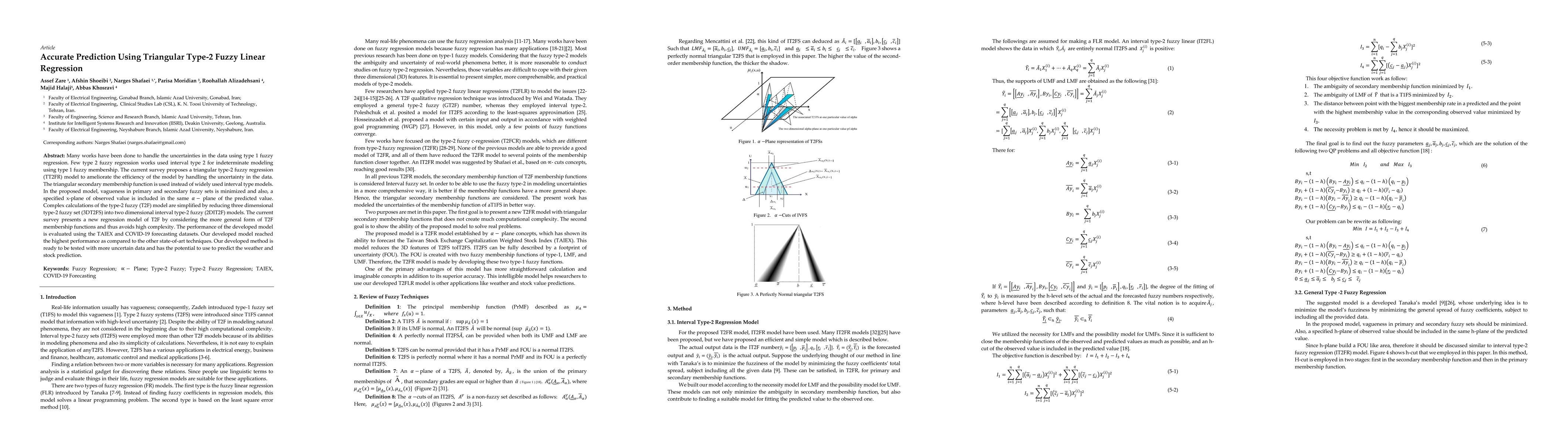 Many works have been done to handle the uncertainties in the data using type 1 fuzzy regression. Few type 2 fuzzy regression works used interval type 2 for indeterminate modeling using type 1 fuzzy membership. The current survey proposes a triangular type-2 fuzzy regression (TT2FR) model to ameliorate the efficiency of the model by handling the uncertainty in the data. The triangular secondary membership function is used instead of widely used interval type models. In the proposed model, vagueness in primary and secondary fuzzy sets is minimized and also, a specified x-plane of observed value is included in the same {\alpha}- plane of the predicted value. Complex calculations of the type-2 fuzzy (T2F) model are simplified by reducing three dimensional type-2 fuzzy set (3DT2FS) into two dimensional interval type-2 fuzzy (2DIT2F) models. The current survey presents a new regression model of T2F by considering the more general form of T2F membership functions and thus avoids high complexity. The performance of the developed model is evaluated using the TAIEX and COVID-19 forecasting datasets. Our developed model reached the highest performance as compared to the other state-of-art techniques. Our developed method is ready to be tested with more uncertain data and has the potential to use to predict the weather and stock prediction.